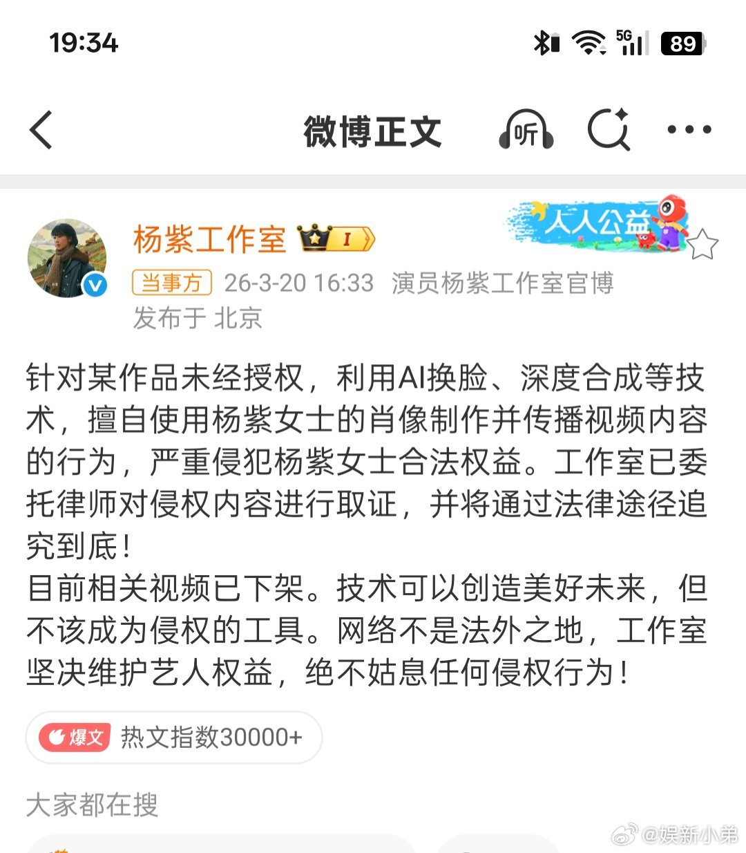 主榜热烫4小时,工作室已告,紫米能不能来夸夸小弟啊。杨紫