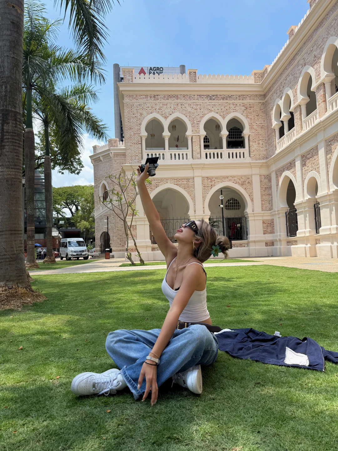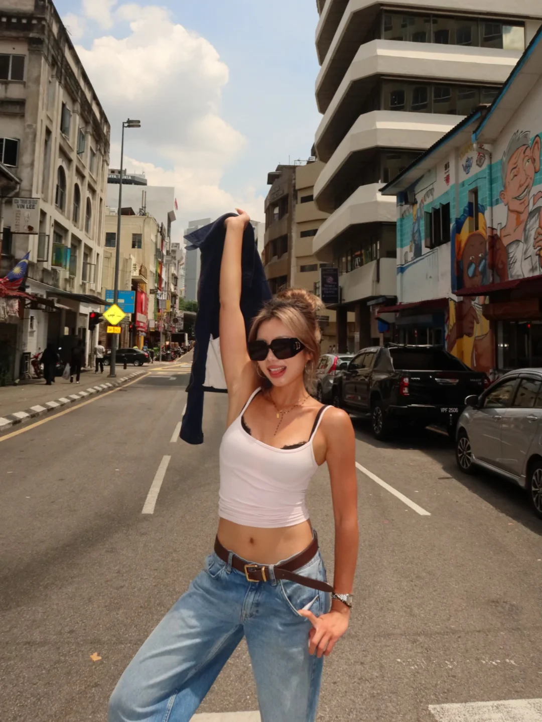去了一趟甲米回来肤色就马上明显了哈哈 每次中午都要在太阳底下补一点能量 有一说一穿这套衣服显得我身材比例有点好😌