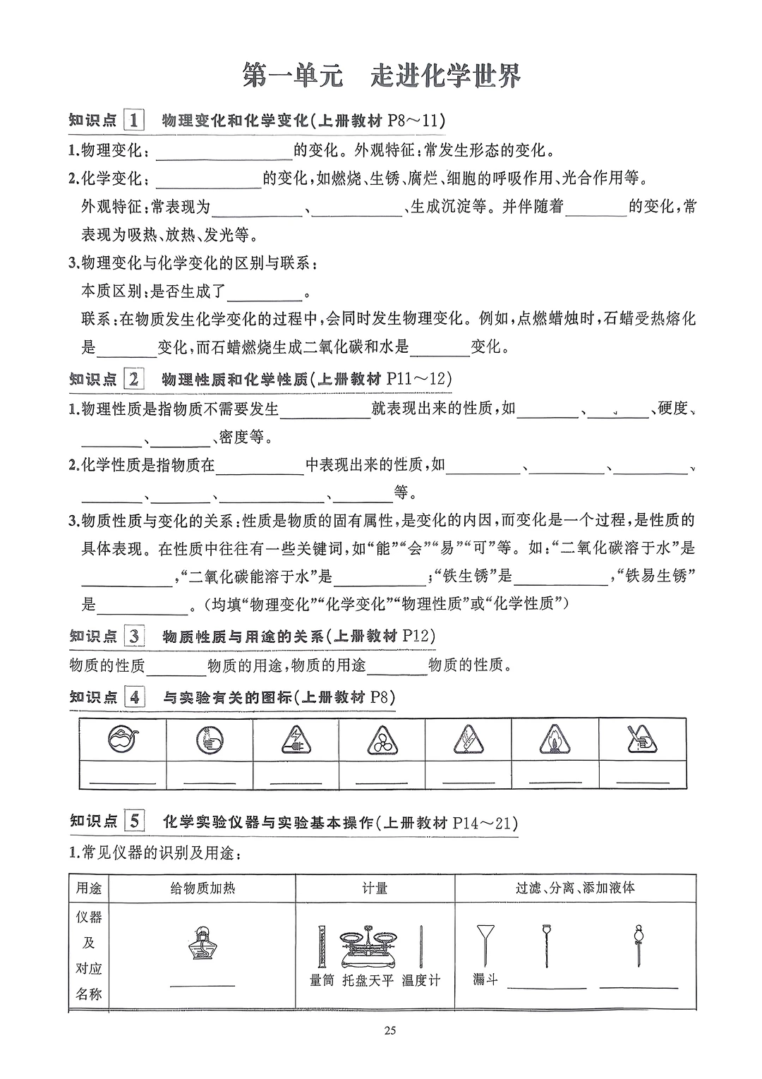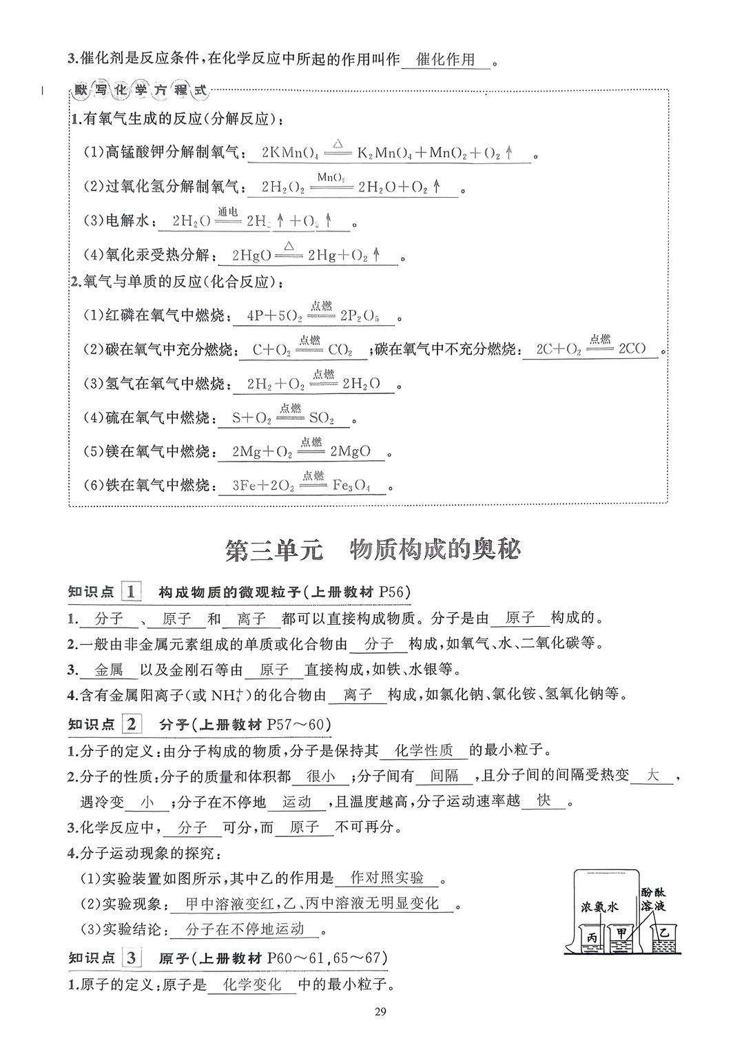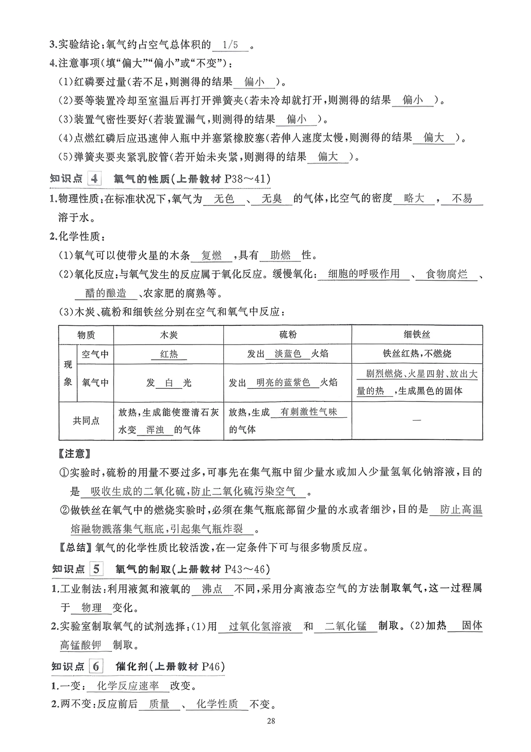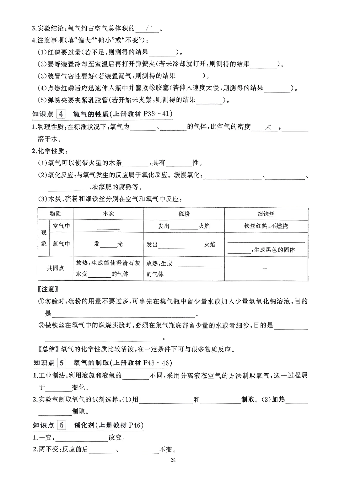 2026九年级化学知识清单