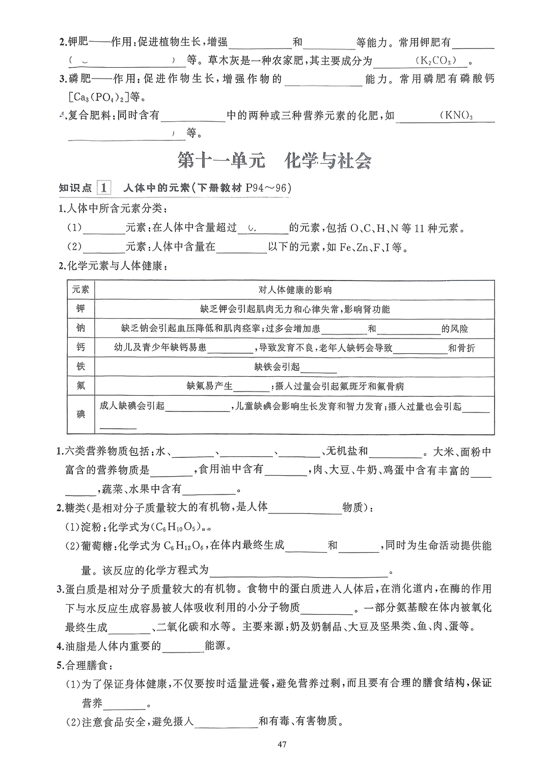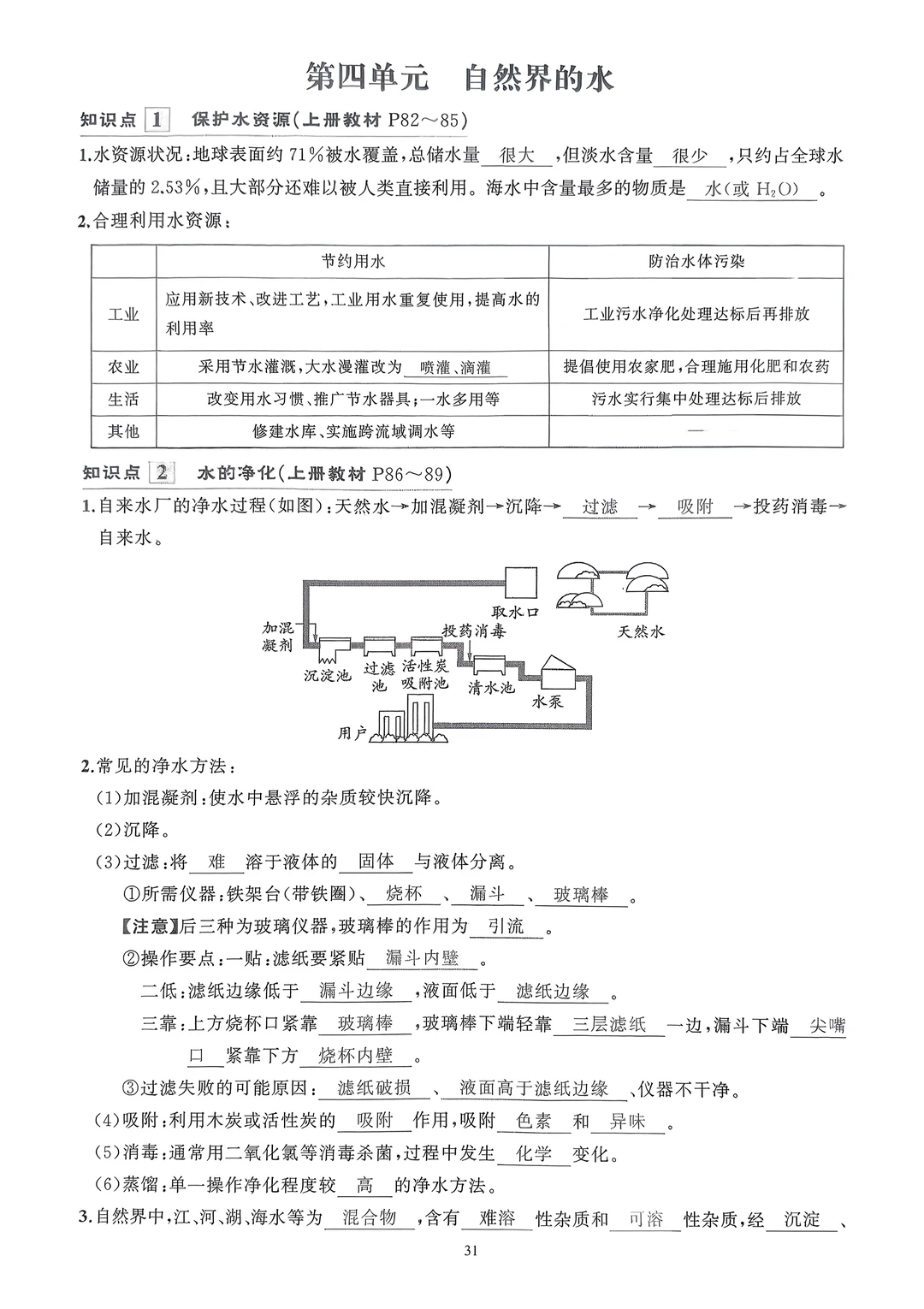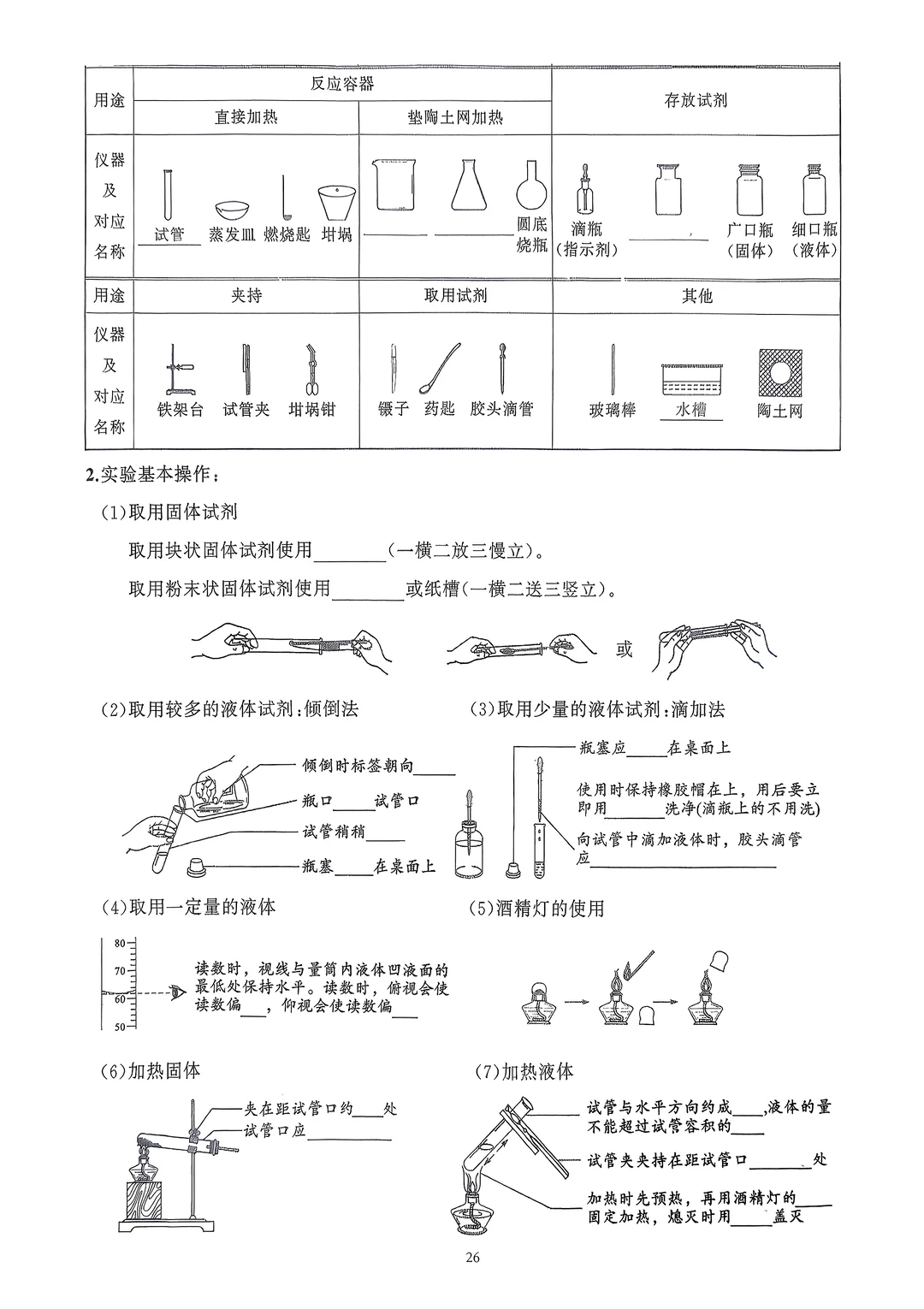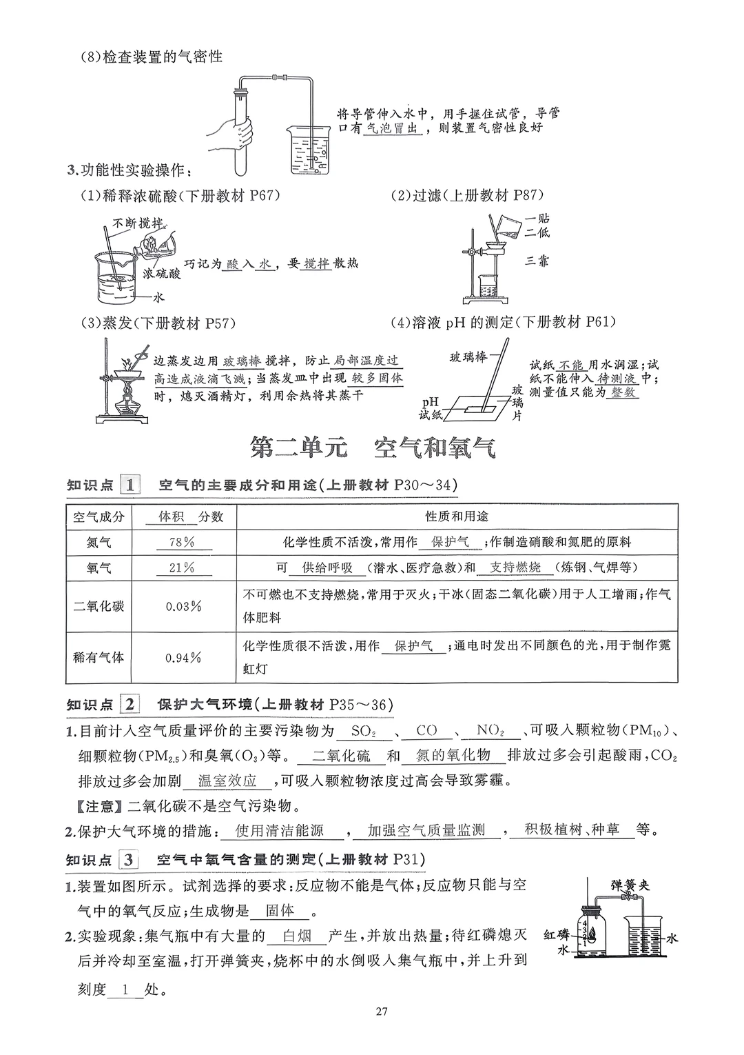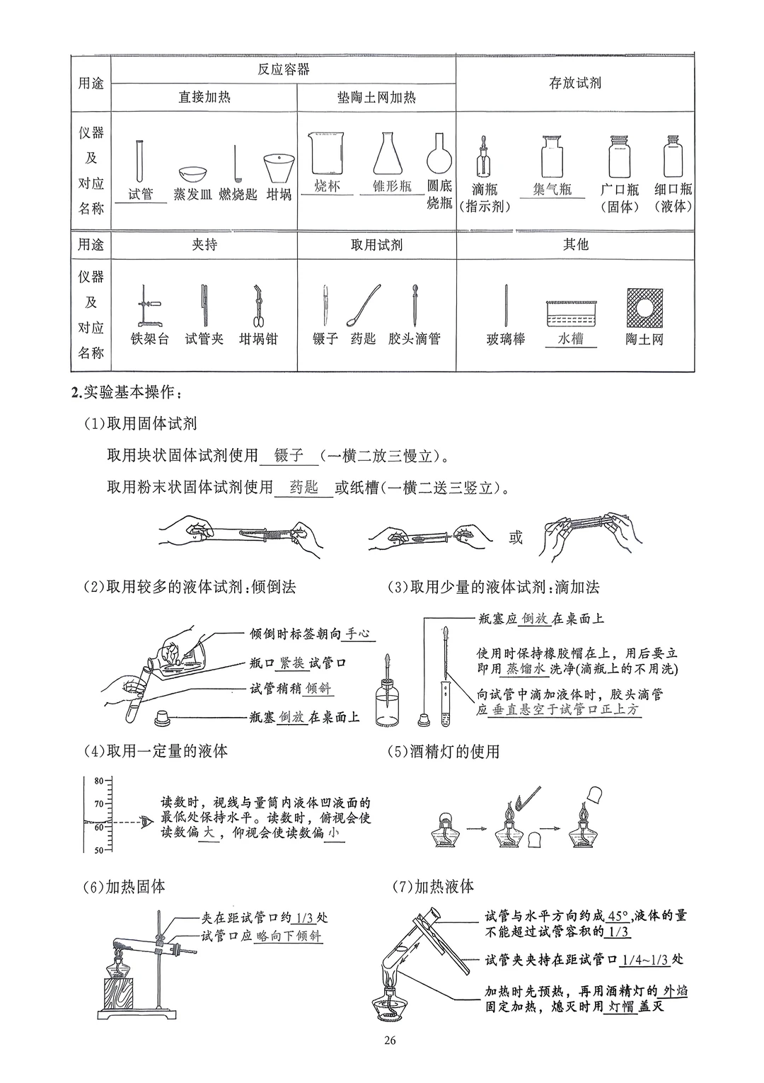 2026九年级化学知识清单