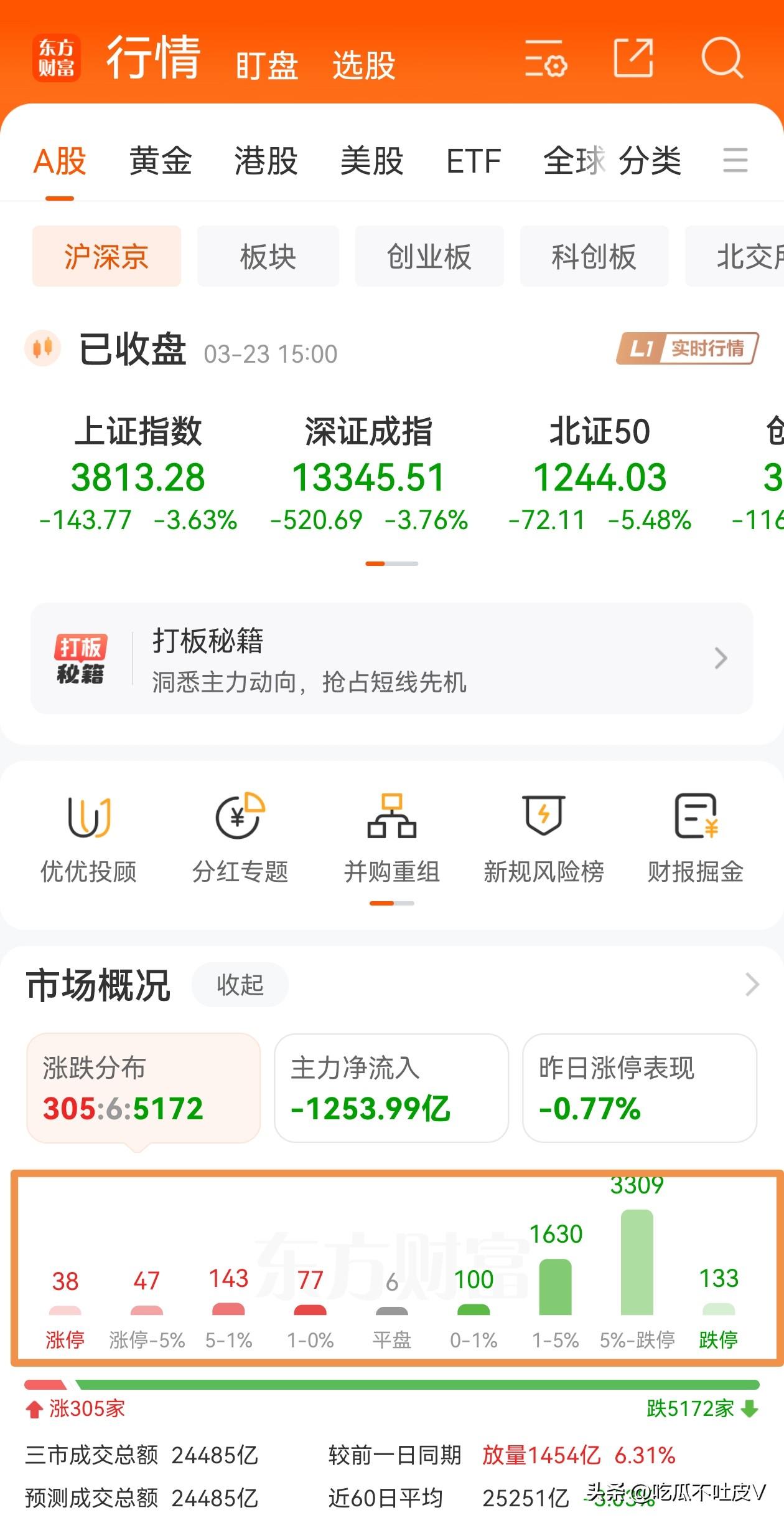 惨不忍睹啊今天!3.23A 股收盘啦!