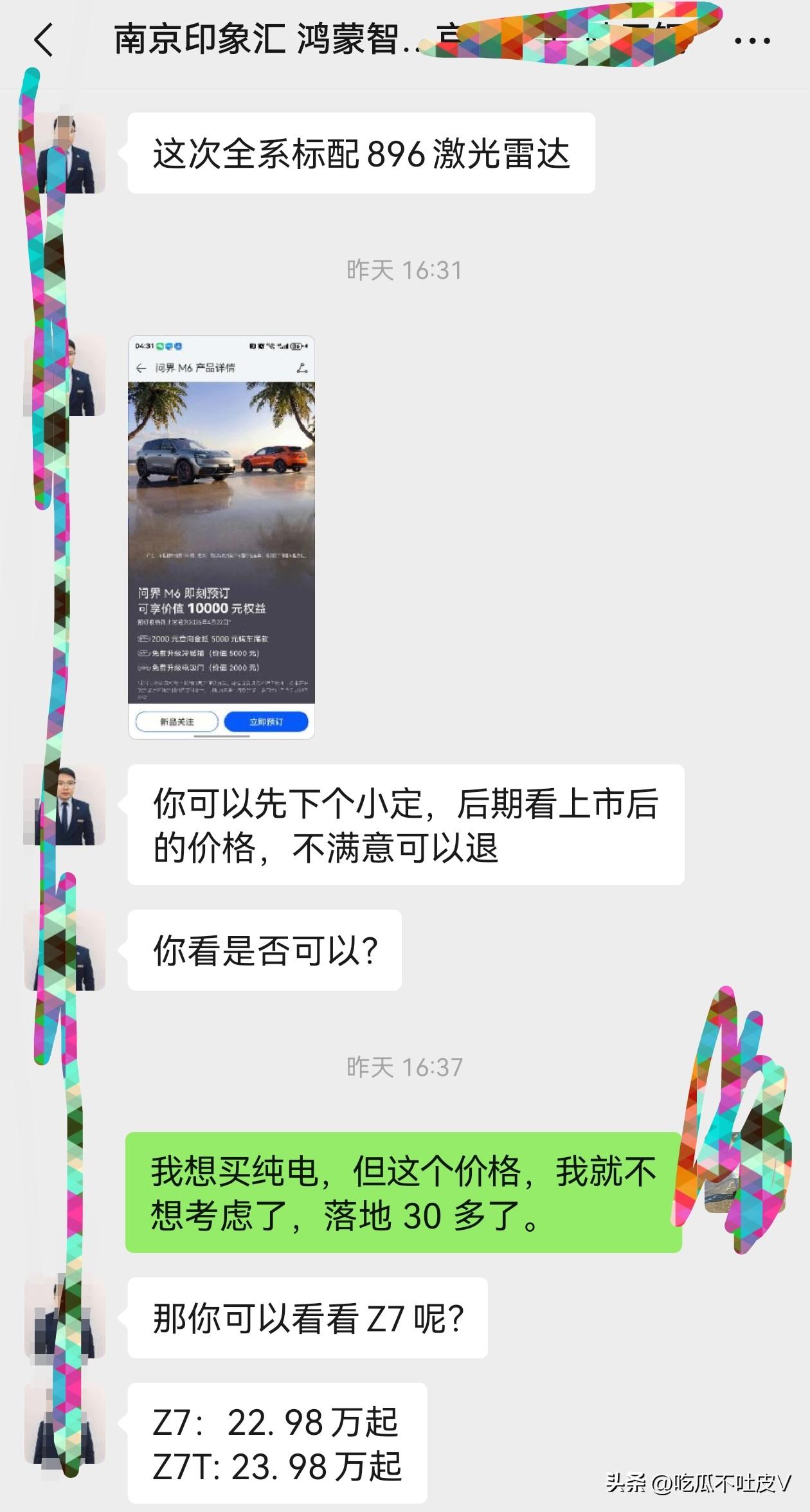 M6 订单 24 小时破 6 万单! 其实这只是小定数据 昨天鸿蒙的销售也让我小定呗,我没同意,因为这价格属实有点出乎意料了,超出自己的预算了,就没有去小定,所以说这小定数据是有水分的,小定后面是可以退的,最后还是要看留存的数据。