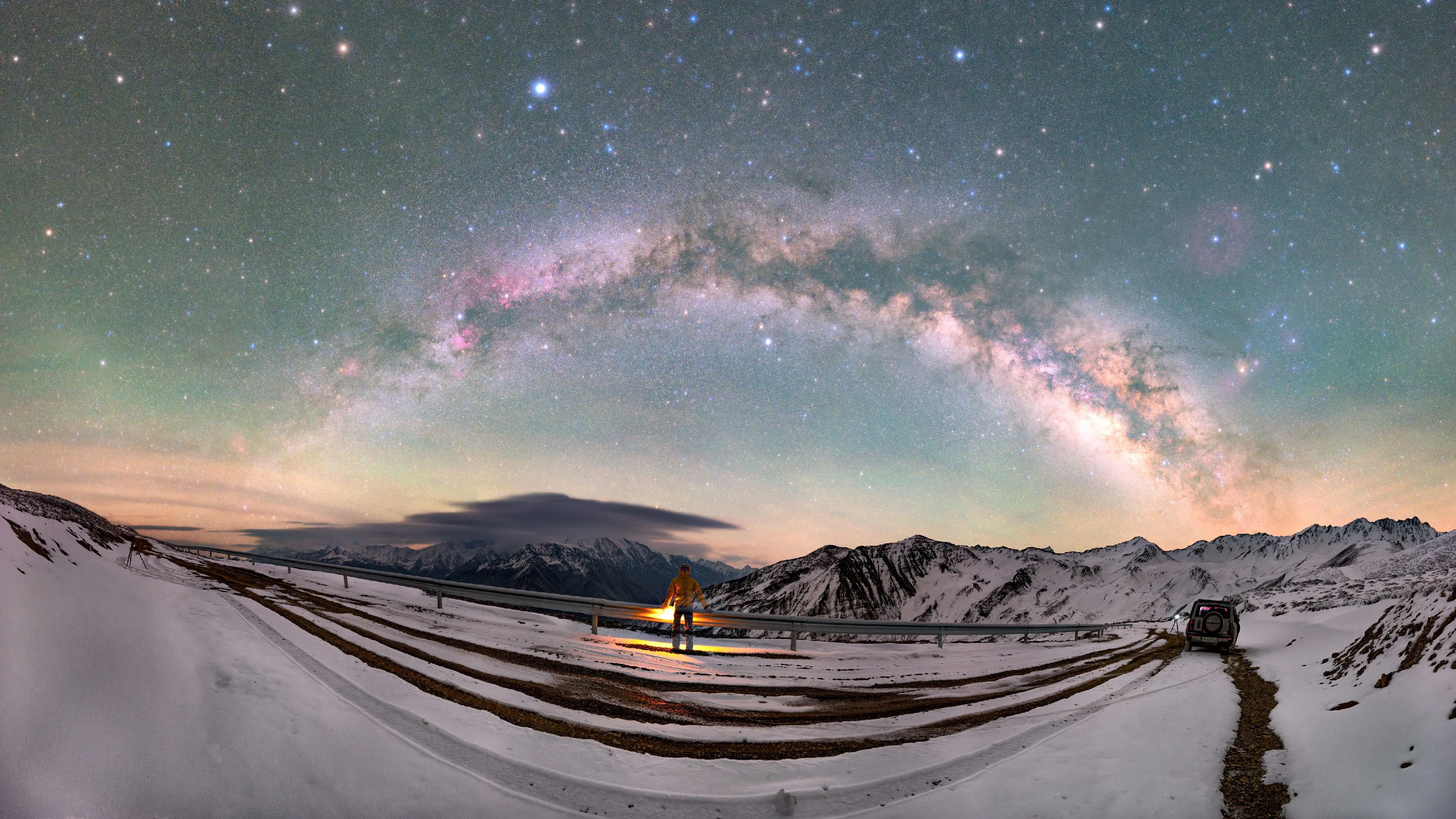 贡嘎雪山上的银河拱桥