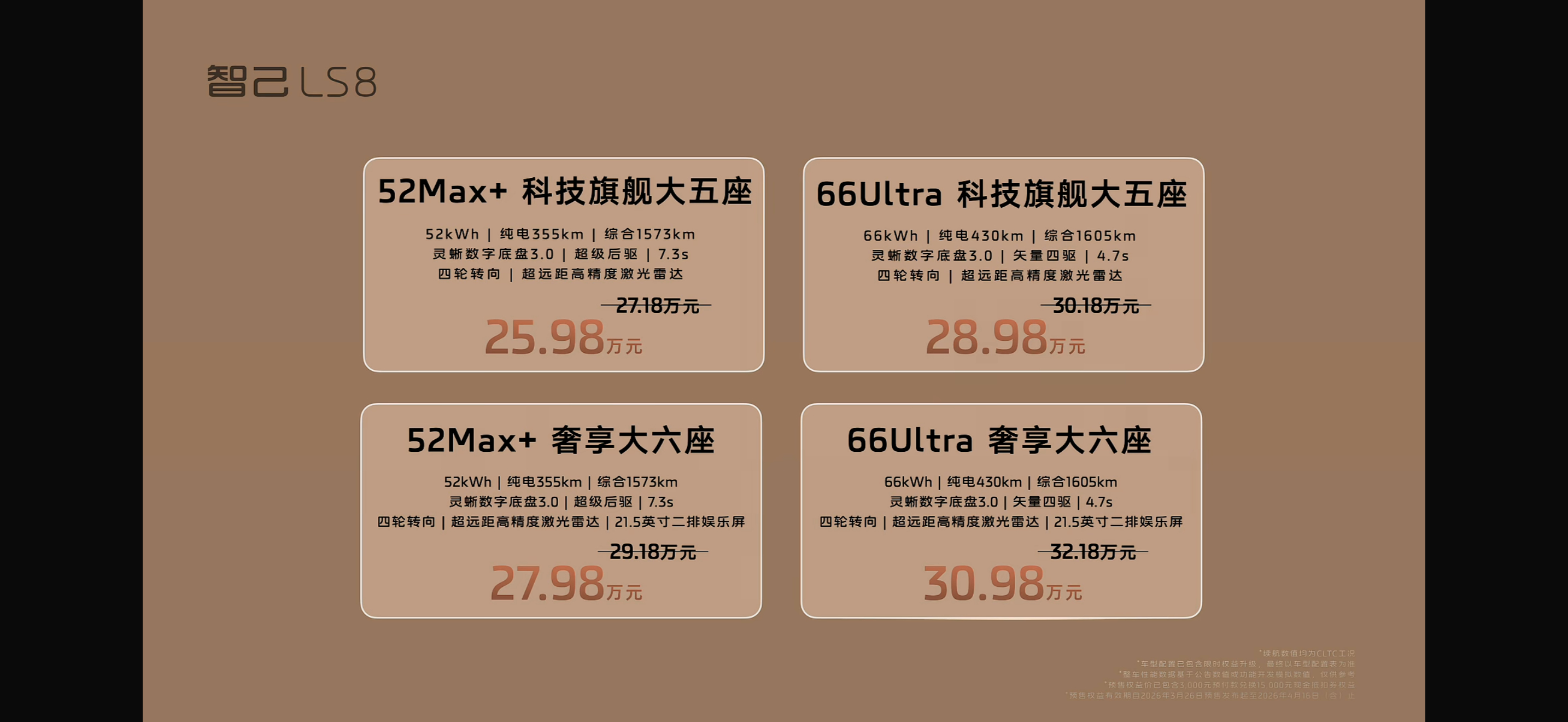 智己LS8预售价25.98万元起。