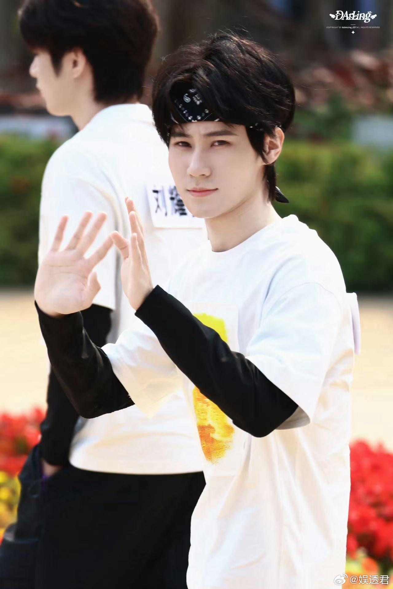 张真源跑男挡不住的青春气息张真源发带小子 跑男录制的上班路透里,张真源戴发带的样