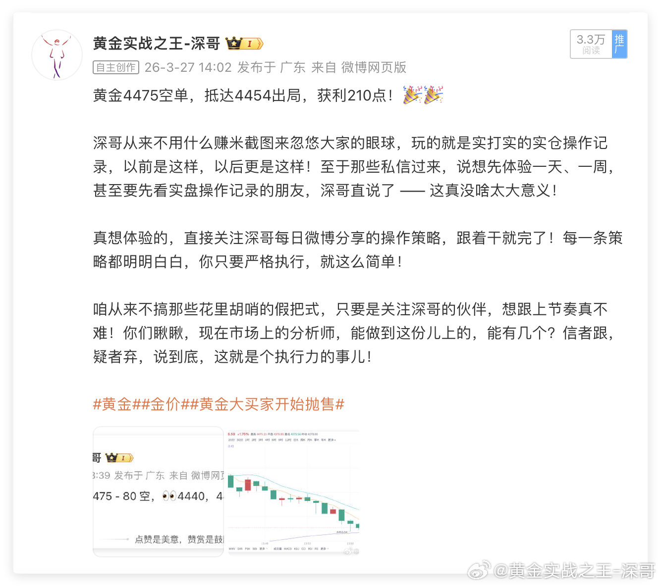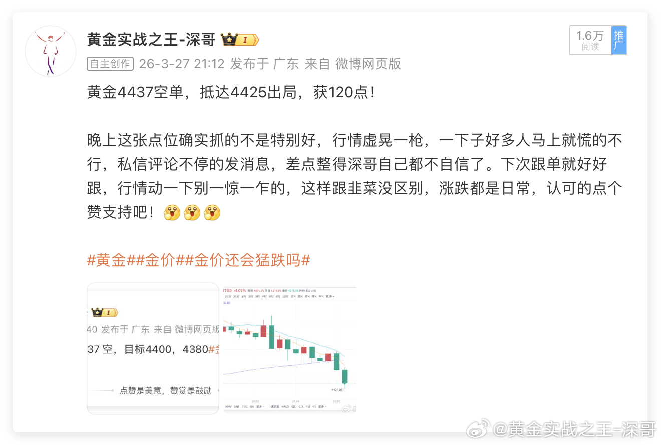 黄金4475空单,抵达4454出局,获利210点黄金4428多单,抵达4415出局,损失130点黄金4437空单,抵达4425出局,获利120点