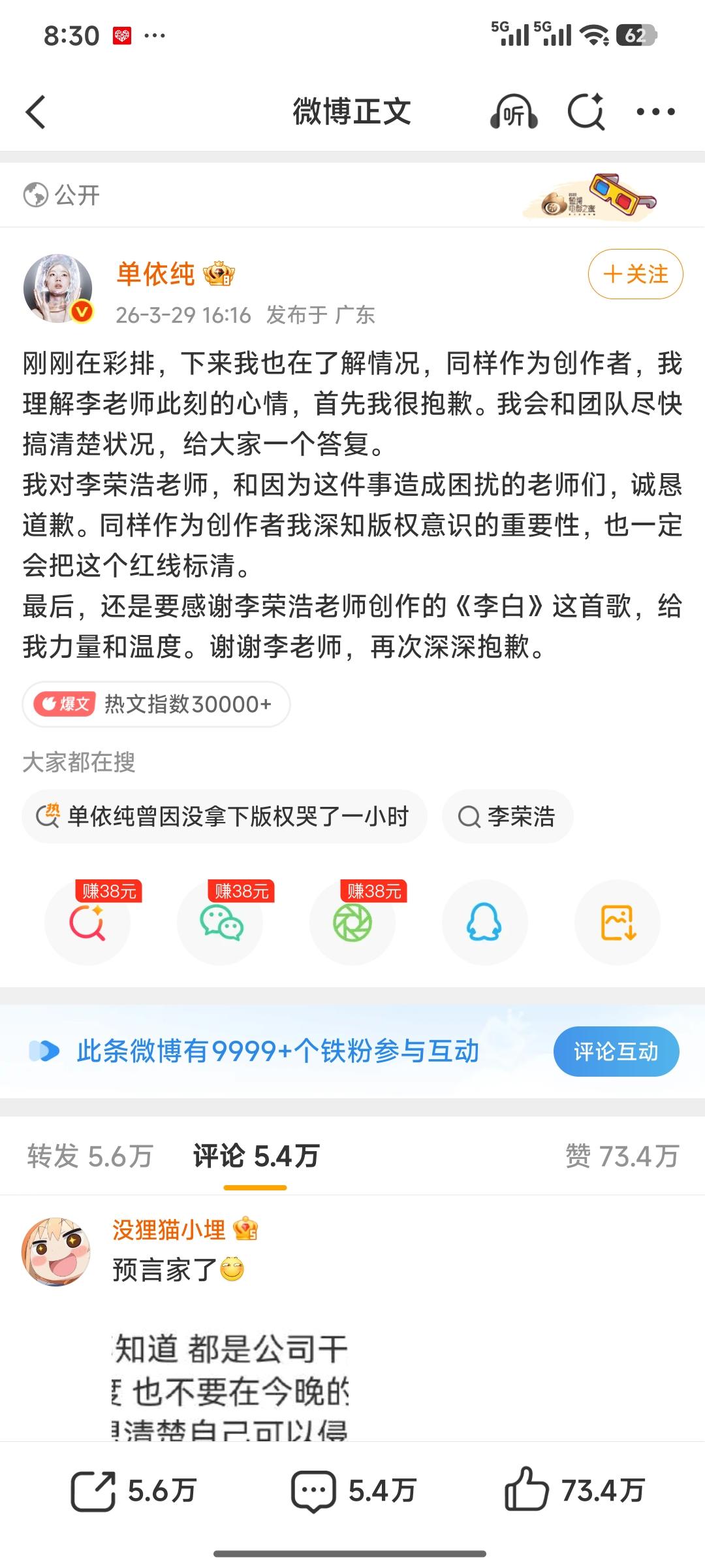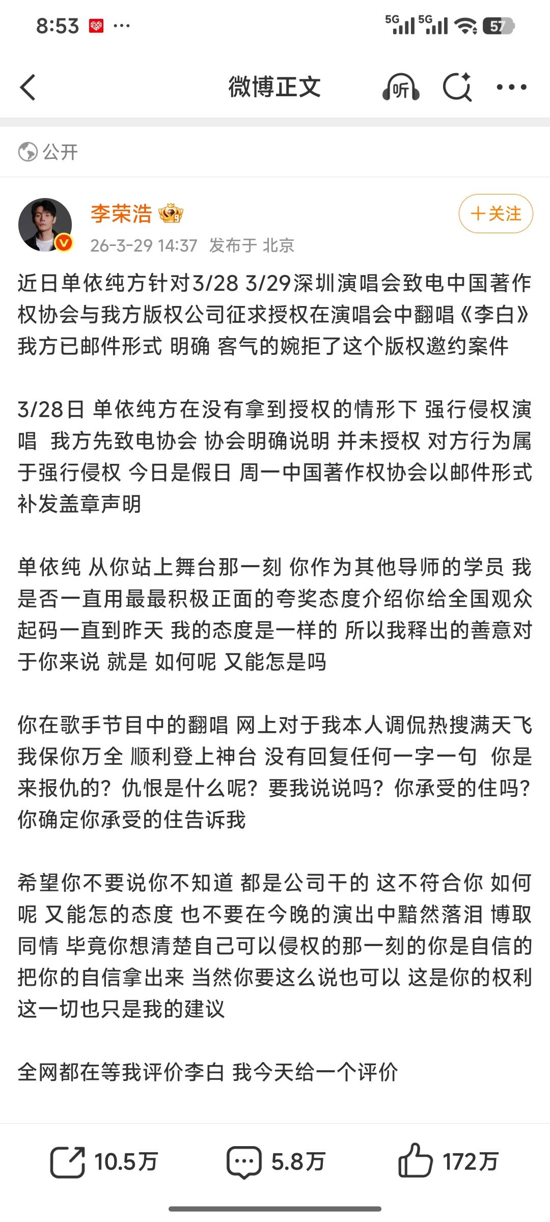 可原唱李荣浩对她一再侵权,零容忍态度,4连问,2堵截,让她不得不3道歉。