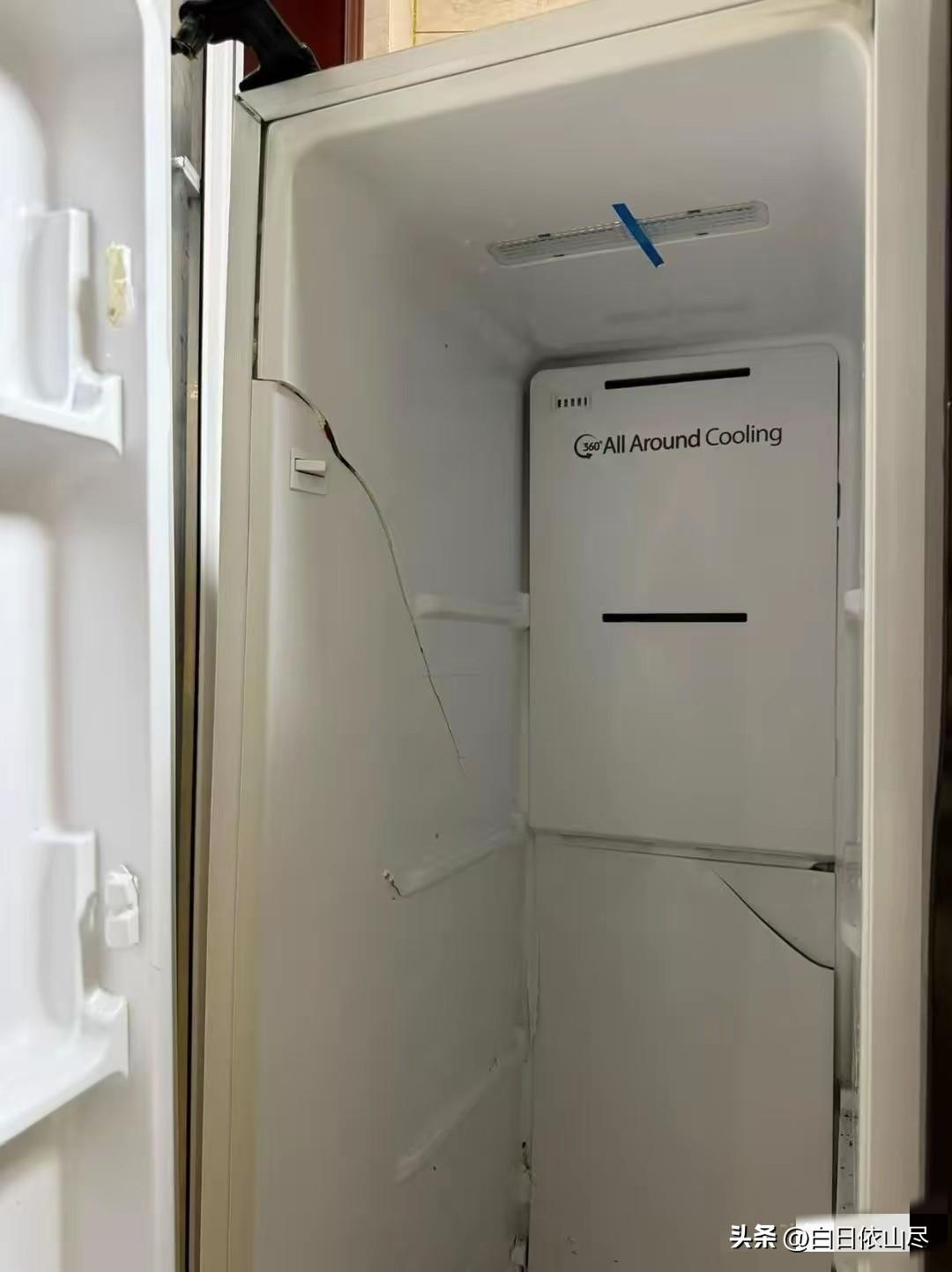 家长听到巨响后,第一时间朝着厨房跑去,眼前的景象让他们心惊不已,原本完好的冰箱已经面目全非,冰箱门板直接被炸飞,掉落在厨房地面上,箱体也严重变形,彻底失去了使用功能,完全报废。