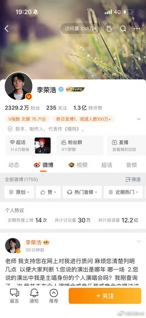 李荣浩一天涨粉29万李荣浩、单依纯事件,李荣浩一天涨粉29万,喜欢他的人真的好多
