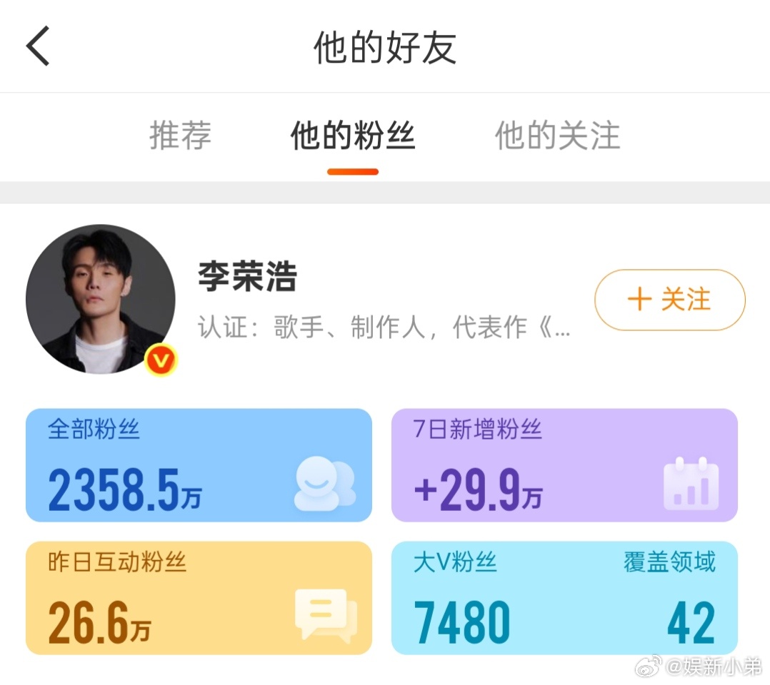 李荣浩一天涨粉29万李荣浩、单依纯事件,李荣浩一天涨粉29万,喜欢他的人真的好多啊,《李白》也是我们非常喜欢听的歌曲,哥请你一定要保护好它。