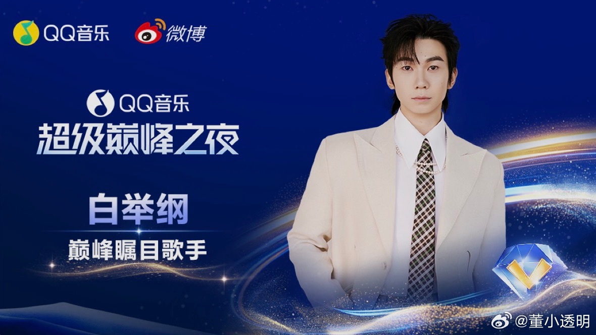 巅峰之夜荣耀加冕!荣获QQ音乐巅峰瞩目歌手,以歌声诠释热爱,凭实力闪耀舞台,每一份认可都实至名归!白举纲QQ音乐超级巅峰之夜白举纲QQ音乐巅峰瞩目歌手