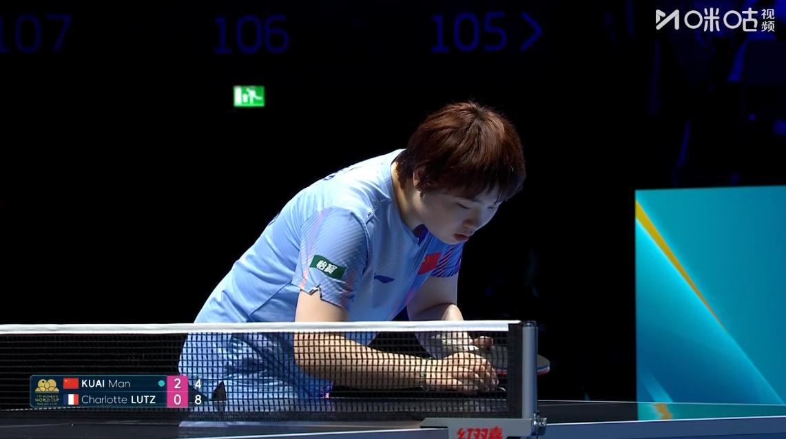 蒯曼接发球回球出界,