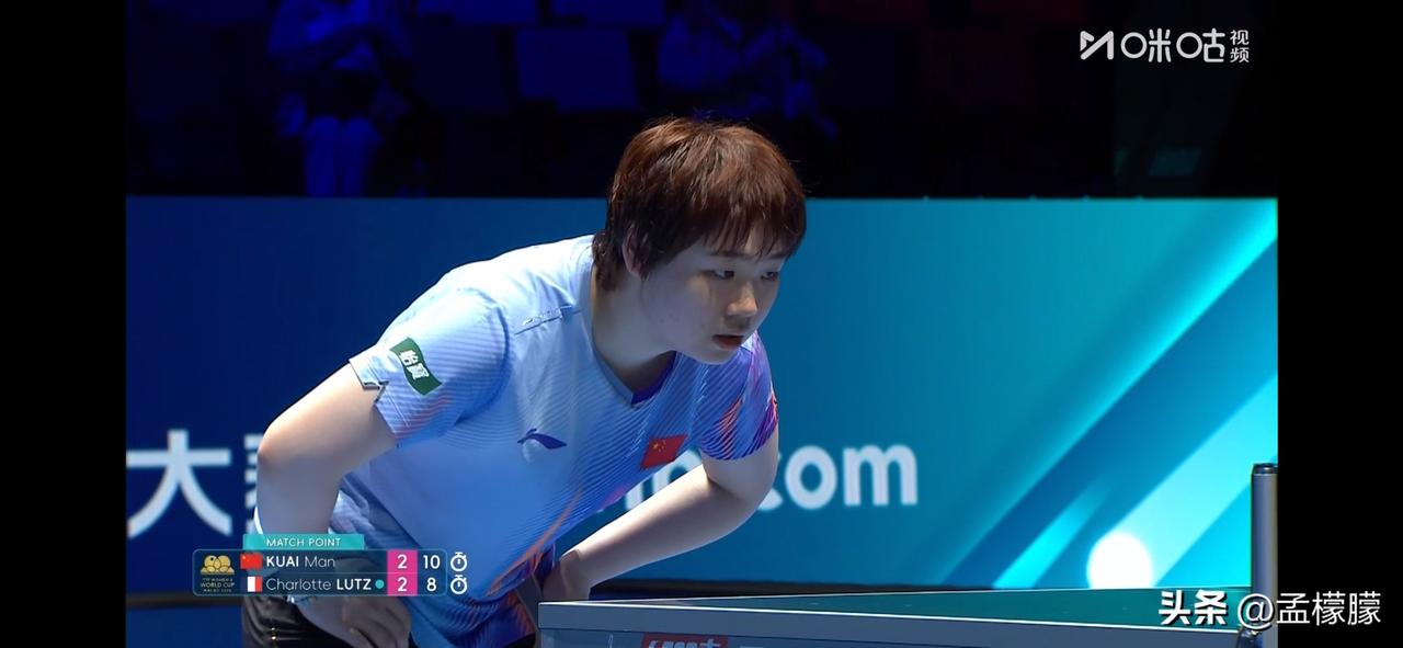 2026澳门国际乒联单打世界杯丨蒯曼 死里逃生,决胜局1-5落后,11-8逆转拿下决胜局,大比分3-2法国卢茨。