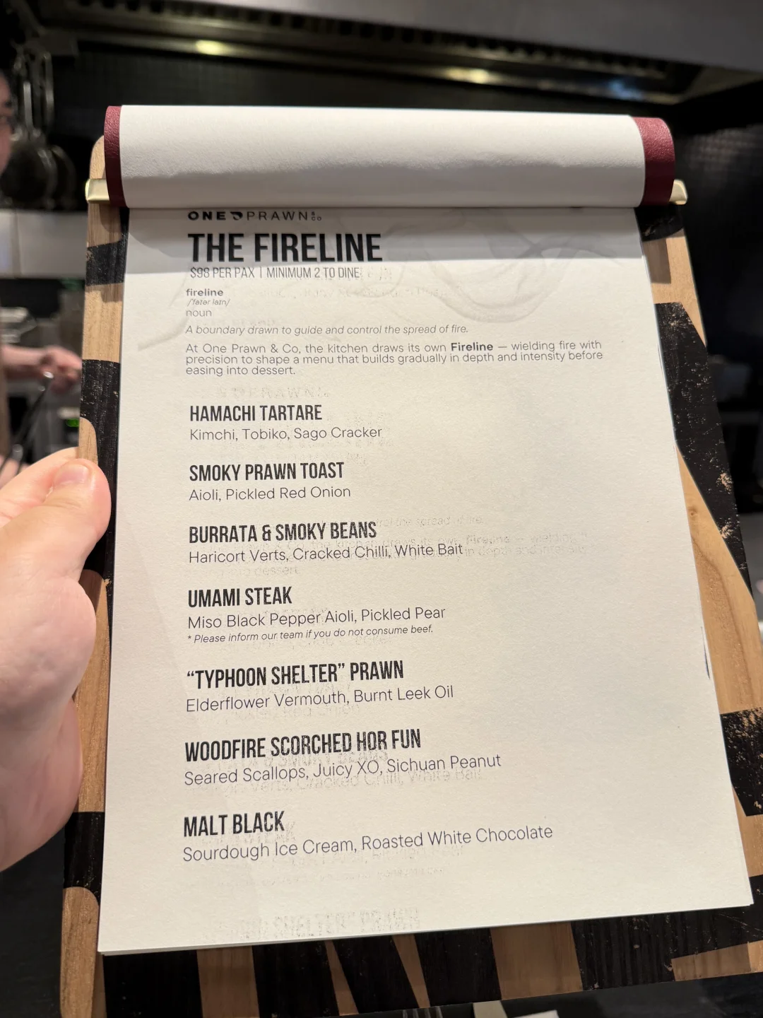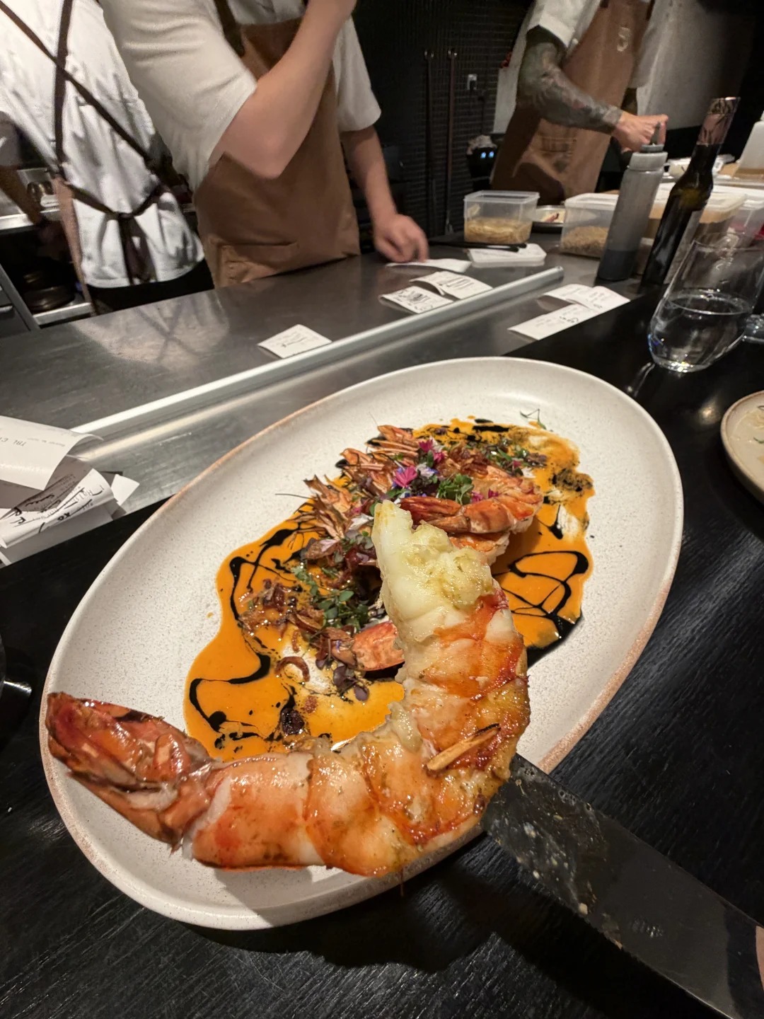 如果只能吃一家漂亮饭,那就是我经常来的这家one prawn & co。明火现场制作,用料都很新鲜。98新的7道菜menu,两个人起点。分量很大,肯定吃得饱。