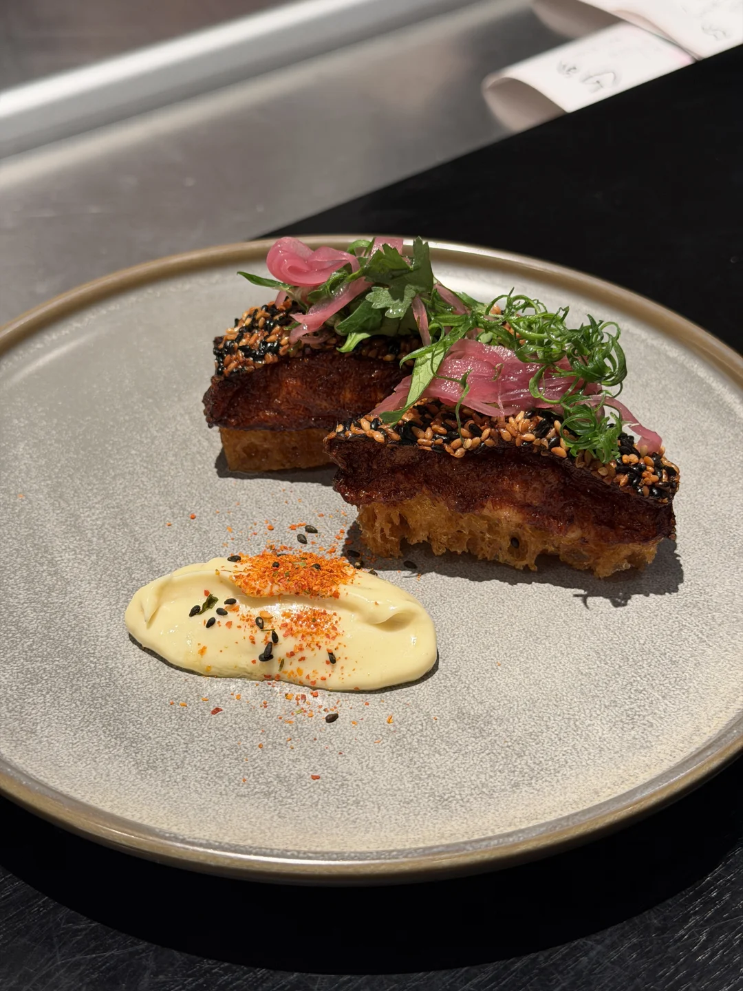 最喜欢牛排,单独吃就很嫩,配上旁边的酱,满嘴奶油香。还有烤虾,每一只都超大,做了去皮开被处理,搭配黑醋汁很好吃。经常会研究融合新菜,看着还挺卷的。说真的,新加坡漂亮饭好吃的不多,这家是不出错的选择。