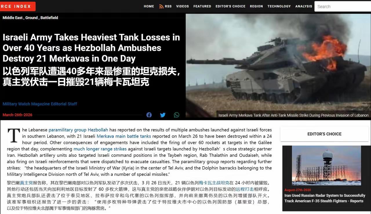 以色列北部边境失守,黎巴嫩真主党已经从地面攻进入,用导弹打击以色列首都特拉维夫! 仗着美国撑死腰,持续肆无忌惮侵略他国土地,实施种族灭绝的以色列,这次真有大麻烦了,边境失守了! 3月29日,黎巴嫩真主党已经从地面攻入以色列非法侵占的加利利地区、基里亚特什莫纳、梅图拉边境地带,并攻占了多个以军哨所。 据半岛电视台和以媒报道,真主党精锐拉德万旅,携带反坦克导弹、FPV无人机等轻装甲装备,突破以军边境防线进入以境内,攻占多个以军前沿哨所。以军后方司令部下令大规模疏散,北部道路拥堵瘫痪。 以军方面已经承认了,北部边境地区多处已经失守,地面战全面爆发! 不得不说,虽然真主党武器装备步入以色列,抵抗意志非常强。在美以联军侵略伊朗后,与伊朗的持续反击形成了同步作战。 早在3月26日—27日,真主党在以黎边境以方一侧,打了一场漂亮伏击战。 多家媒体报道,真主党在48小时内摧毁了以色列引以为傲的梅卡瓦坦克21辆,还有2台D9推土机,直接打残以军第7装甲旅一个营。 据悉,真主党使用光纤反坦克导弹和FPV自杀无人机,从顶端打击,攻破了梅卡瓦坦克的主动防御系统。 以军通报,4人死亡、十余人重伤,是1982年以来最惨重单日装甲损失! 3月28—29日,真主党采用远程攻击和地面同步攻入。 在24小时内,发射87次火箭弹和无人机覆盖以北部,以色列的“铁穹”防御系统多处出现真空。然后,真主党地面部队 持续越过边境,在加利利与以军展开近距离巷战和山地战,成功控制了边境纵深要点。 3月29日,真主党打击以军代尔西里扬镇集结地,以军被迫后撤。 随后,内塔尼亚胡下令以军进一步侵占黎巴嫩南部地区,以军第146师深入黎境8公里,以色列军空袭黎巴嫩境内超1100次,但是,没能阻止真主党越境攻入。 3月30日,真主党已经成功突破以色列北部边境,地面部队攻入加利利地区,控制边境要点,并使用远程导弹首次打到特拉维夫。 前几天以色列首都特拉维夫被成千上万乌鸦围城,看来不是好事啊! 现在以色列面临伊朗远程打击,胡塞武装远程打击,黎巴嫩真主党从地面攻进本土。此前中东小霸王宣称“铁穹”防御系统刀枪不入,仗着美国撑腰,动不动就欺凌地区周边国家,这回可能会遭到彻底清算了! 大家看看下面图片,就是黎巴嫩南部山区地形,打游击的好地方。