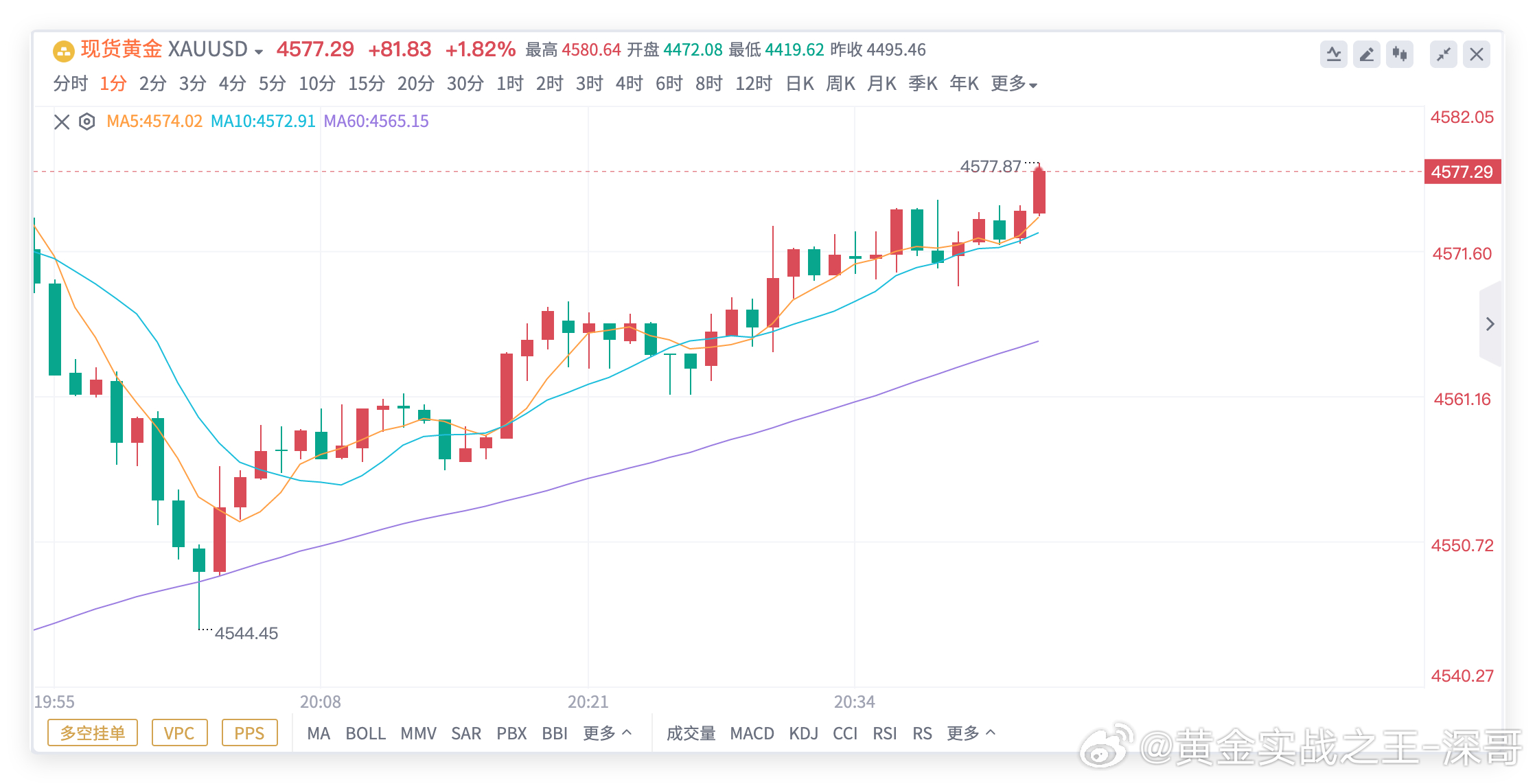 思路没问题考验的就是执行力,深哥在4545 - 50 位置分享的黄金多单,期间抵达 4567 价格提示减持护利,现抵达 4577 利润进一步扩充至 270 个点,尾仓部分全部离场拿下!