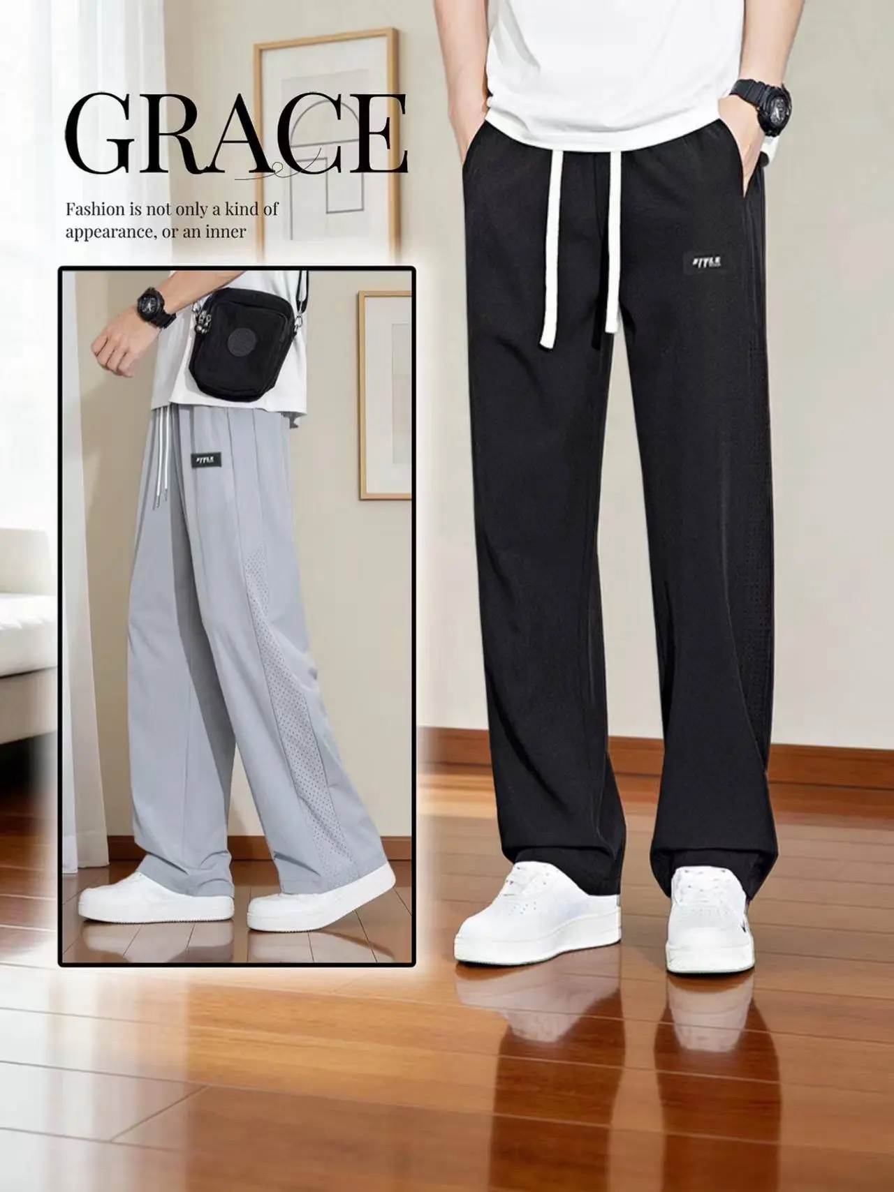 运动休闲直筒垂感裤子 休闲裤直筒运动裤子 运动直筒长裤 垂感运动裤 运动阔腿裤男