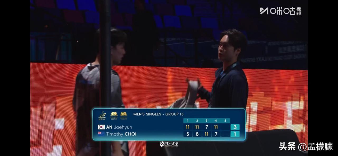 安宰贤(KOR)3-1托马斯·崔(NZL)【11-5,11-8,7-11,11-7】