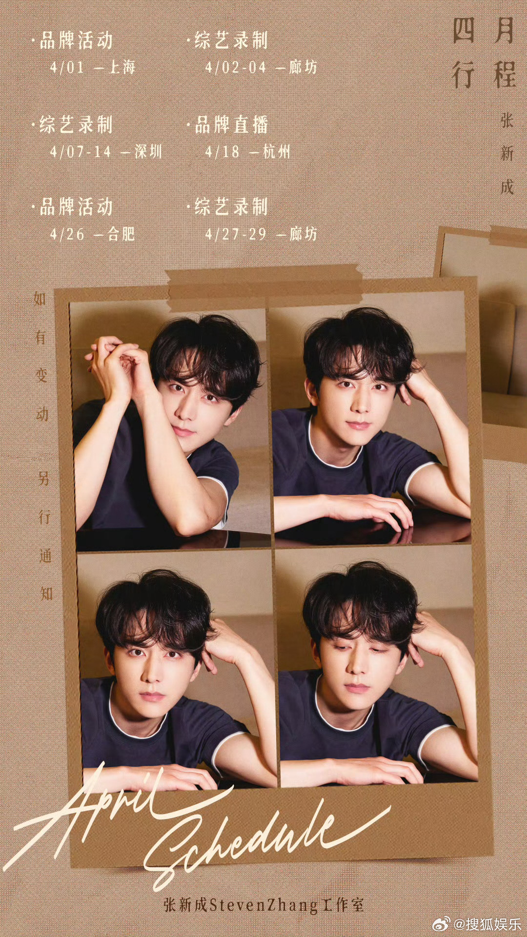 王鹤棣、刘宇、敖瑞鹏、夏之光、田嘉瑞、张彬彬、胡一天、刘学义、张新成、颜安四月行程图 公布,美好的四月即将开启