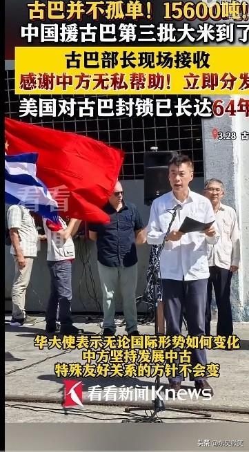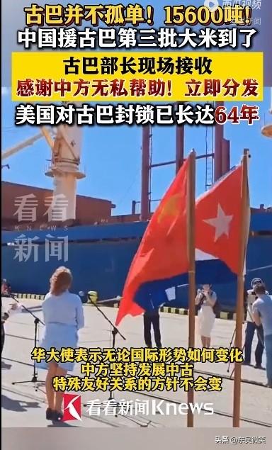 当地时间3月28日,中方紧急援古的第三批15600吨大米到达哈瓦那港口,我驻古大使华昕,古内贸部长等出席交接仪式。 华大使表示,这批粮食是中方一揽子援助的一部分,无论国际形势如何变化,中古要加强合作,共克时艰,我们的特殊友好关系不会变。 古内贸部长表示,衷心感谢中国政府和人民,援助物资高度体现了中古特殊兄弟情谊。