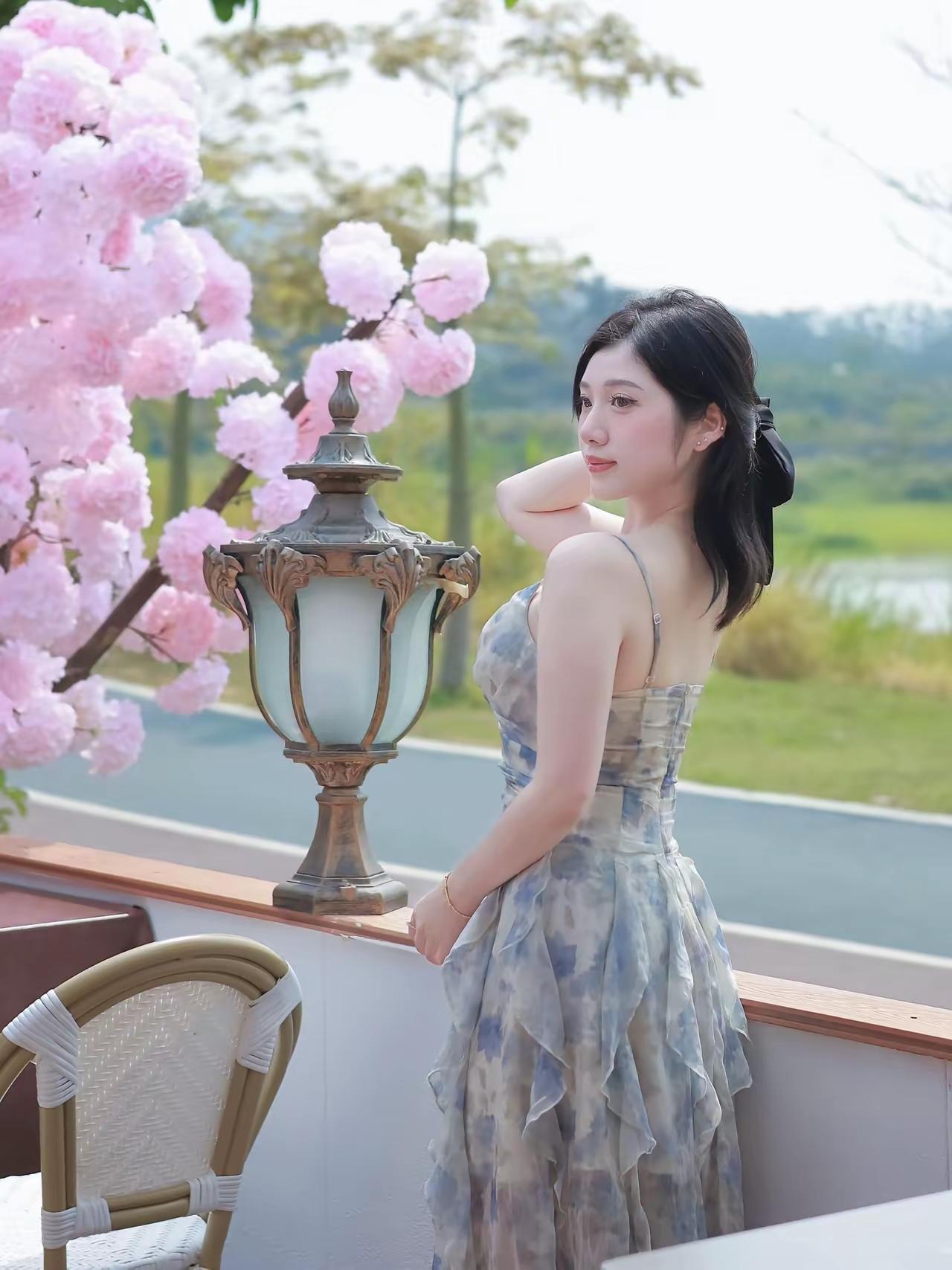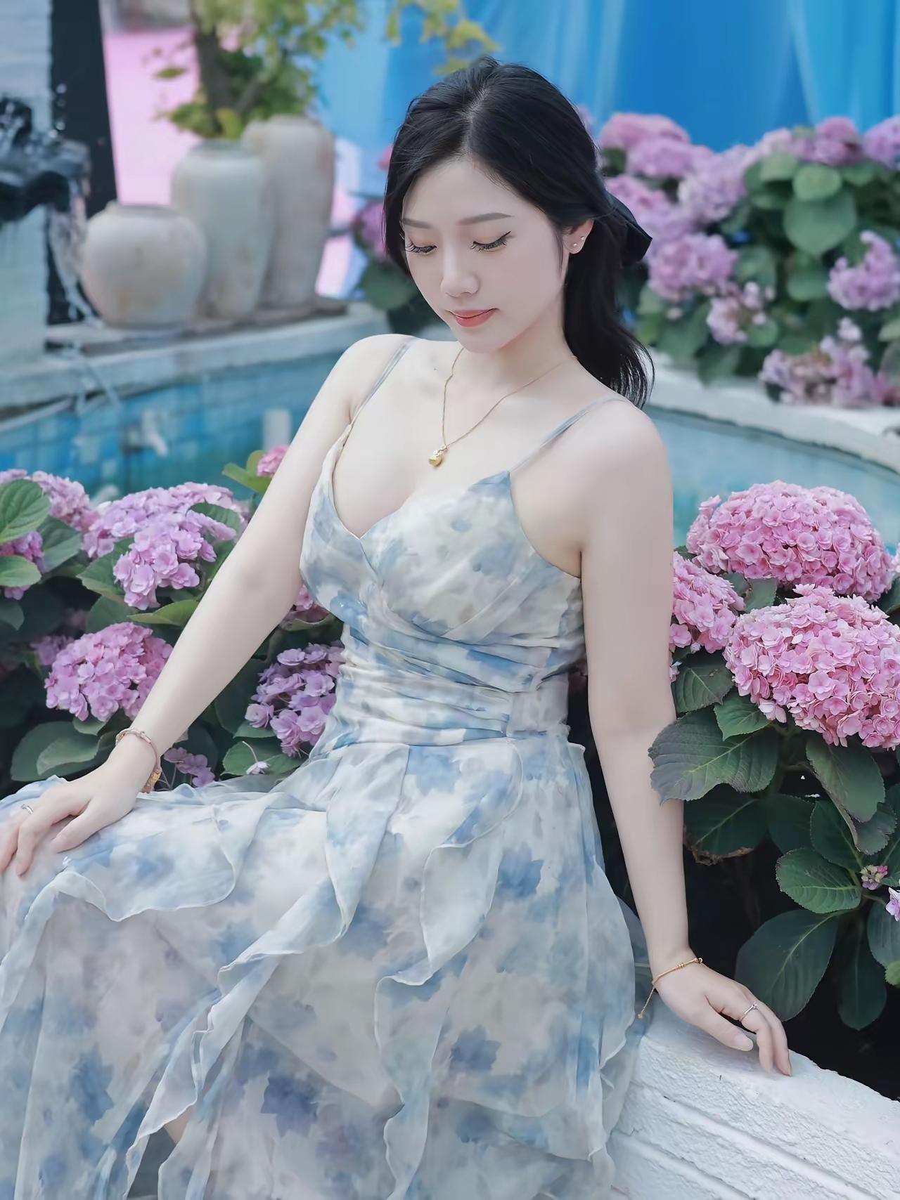 色调适配满分:蓝白裙与背景的粉色绣球花、绿色草地形成撞色,既和谐又突出主体,画面干净高级。 版型显瘦加分:吊带设计露肩颈线条,收腰+飘逸裙摆修饰身形,显高又显瘦,适配春日/度假场景。 风格统一高级:清新、温柔、仙气感拉满,不管是拍近景还是远景,都有“春日氛围感美女”的既视感。 有哪些女生日常好看穿搭可以借鉴 春天的访客,总带着温柔的情绪。你在花前微笑,是好奇这朵花的名字,还是思念送花的人?坐在长椅上望向远方,是好奇未来的模样,还是思念曾经的陪伴?原来每一次心动,都是好奇与思念的相遇,在岁月里开出温柔的花。