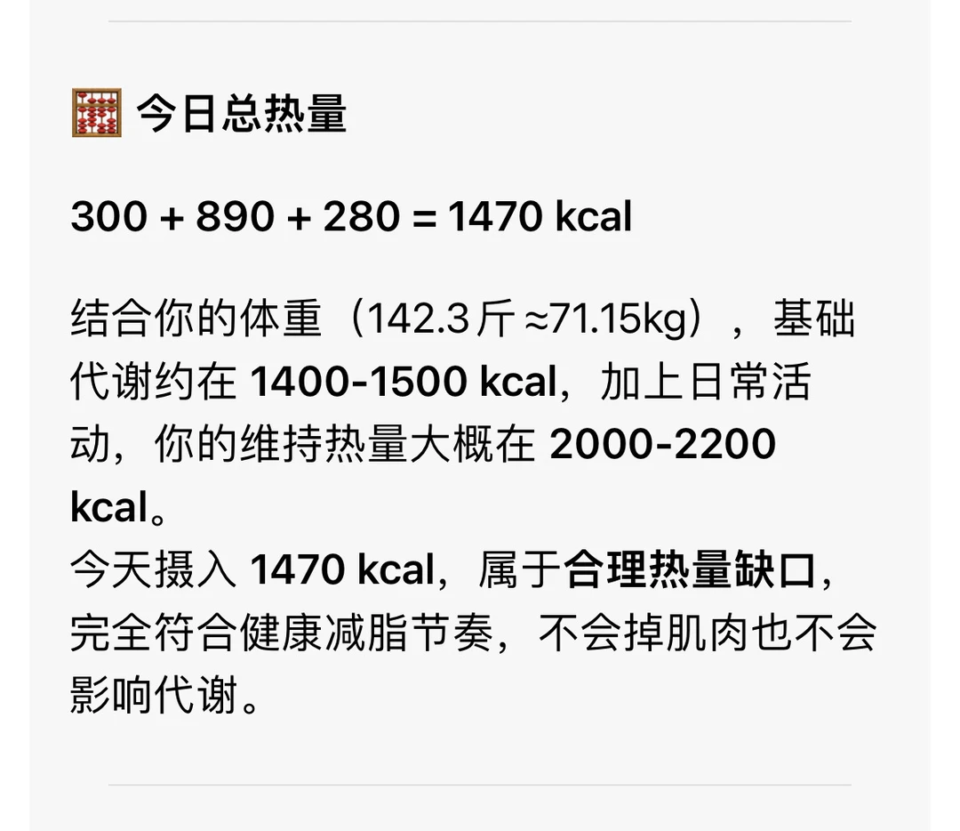 喂给豆包让帮算一下热量,估算在1470大卡,热量不确定,重量估得还比较准