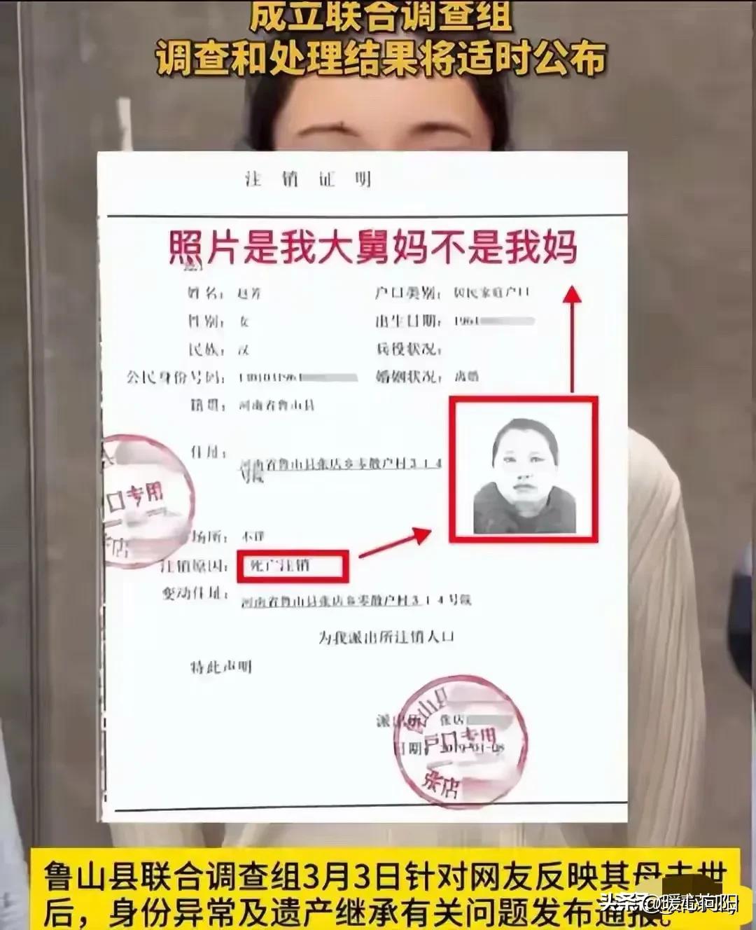 河南鲁山“母亲身份被舅妈冒用,亲舅舅成为继夫”事件己查清。孙艺菲的舅舅赵某品有违法行为,但是过了追诉期了,没有侵吞姐姐赵某的财产,所以给出了开除党籍,政务撤职严厉处罚!没有开除! 据调查孙艺菲的母亲赵某在石家庄有三处不动产,某小区有一套70多平米的商品房1套,其中欠房贷10万多,有一间7平米多的地下室,还有1间20多平方米的门面房。银行卡里有3万多透支用于还房贷。 孙艺菲母亲去逝后,其舅舅和小姨把那套70多米的商品楼卖了,售价35万元,还房贷10万多,银行卡透支3万多,给孙艺菲买保险花了2.5万元。还有给孙艺菲母亲看病住院费,治疗费,安葬费。剩余部分由小姨保管,用于孙艺菲的抚养费。 在卖楼时中介要求户主迁出户囗,所以孙艺菲的舅舅把母亲的户囗迁回了鲁山,至于为什么舅妈冒用母亲身份与舅舅结婚,因为孙艺菲的母亲以前是鲁山某公司的职工,有缴纳养老保险的记录,舅舅想把舅妈顶替姐姐的身份缴纳养老保险,所以闹出了舅舅和亡姐结婚的笑话! 舅舅当时是政法委副书记,为了舅妈顶替母亲身份领取养老金,通过关系办了假户口,假结婚证,可是后来也没敢续交养老保险怕出问题,于是舅舅把亡姐的养老金帐户的个人部分提出来交给了父亲。 舅舅是国家公职人员,利用职务之便,办了假户口,又办了假结婚证,严重违法,但是超过了追究时效,所以结予了开除党籍,政务撤职严厉处罚! 为了领那一点没到手的养老金,到处找关系,办假户口,假结婚证,费了那么大的劲,最后也没敢续交养老保险,还受了处罚,太不值了!