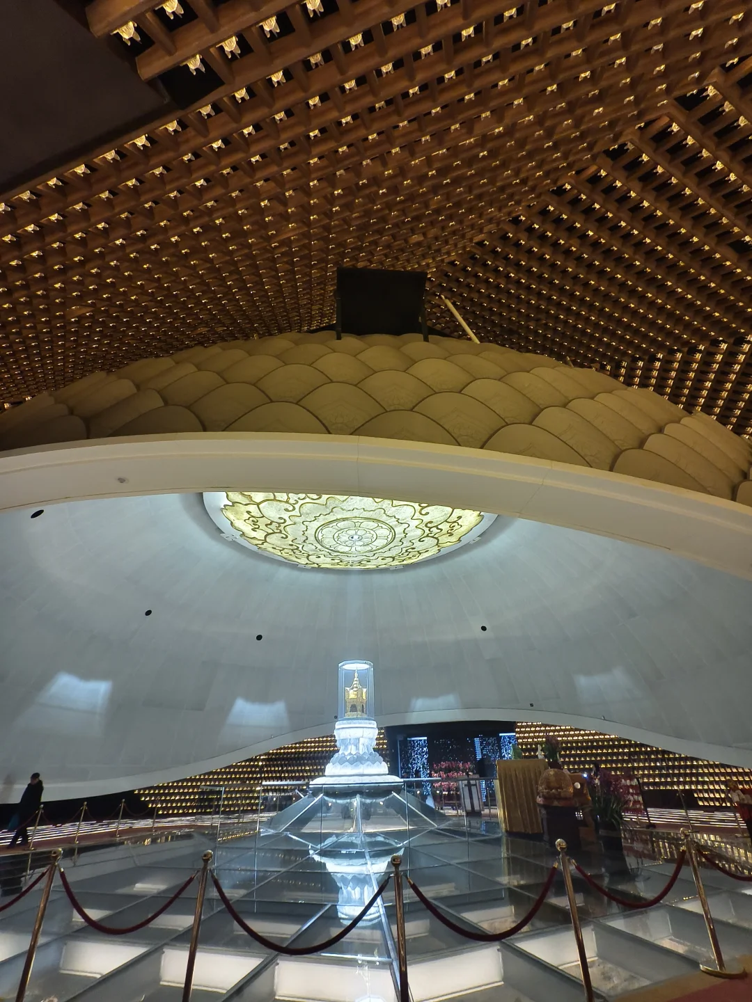 [打卡R]长廊尽头,玄奘大师在世与佛陀涅槃相隔约一千年,玄奘顶骨舍利与佛陀顶骨舍利共同藏于此地也约一千年。名曰:“千年对望”