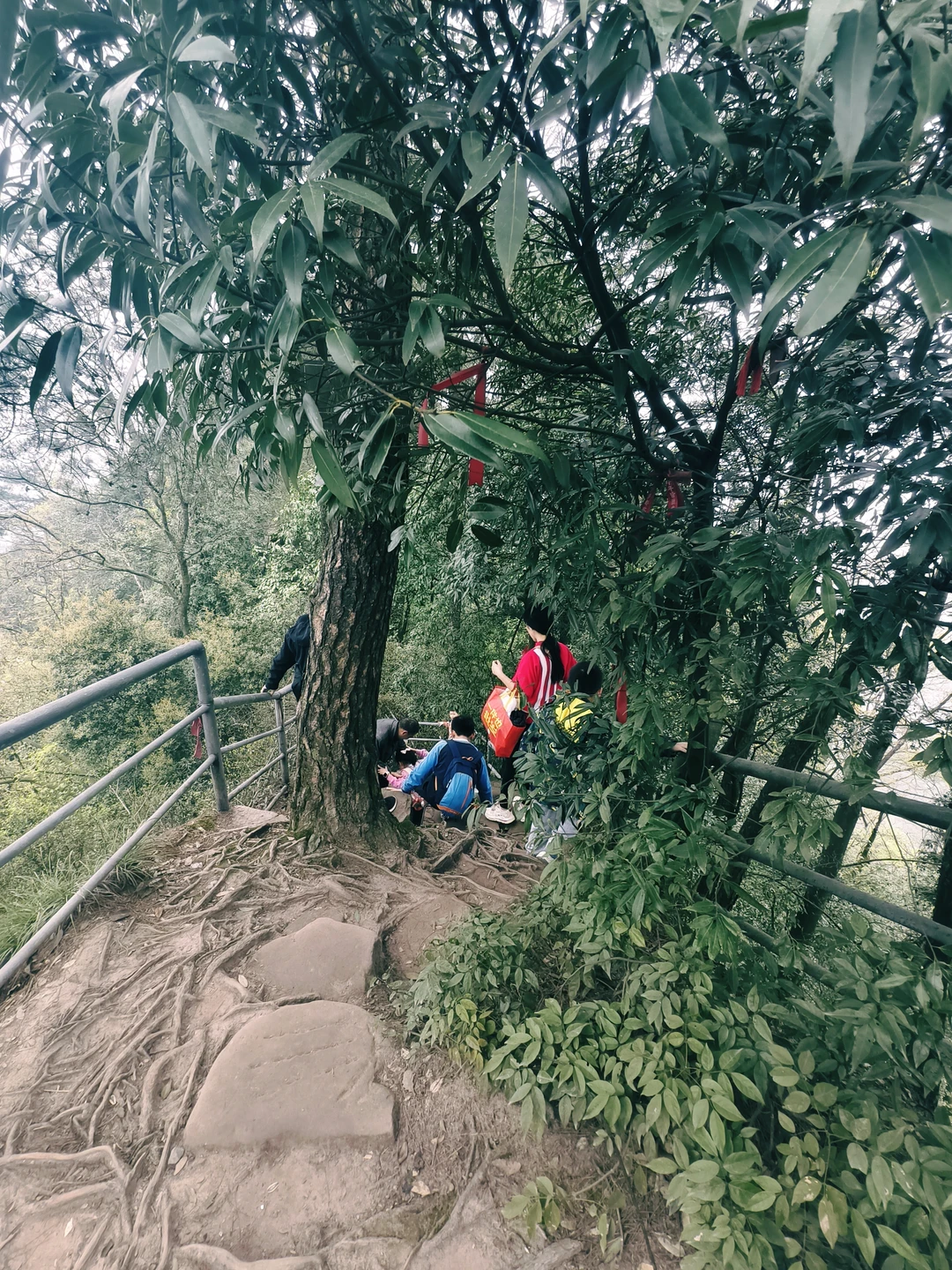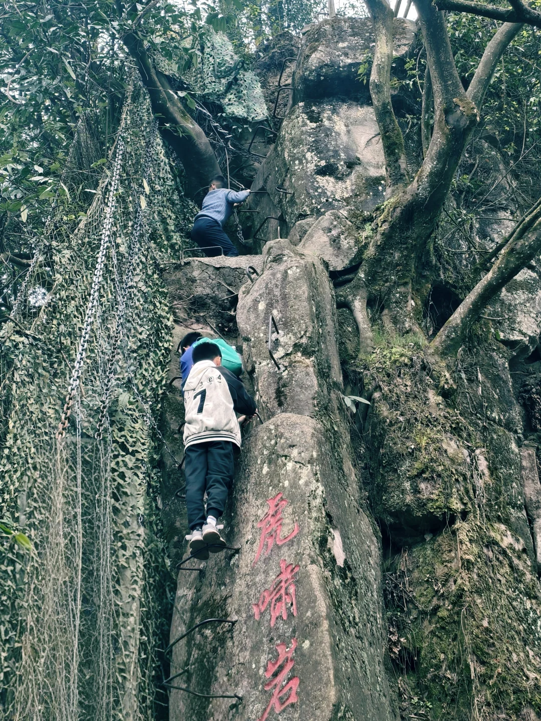 从山底爬到东西线路分界处有点距离,腿脚不好的人不适合去哦。东线有一定难度,需要手脚并用,小朋友们一定⚠️注意安全。