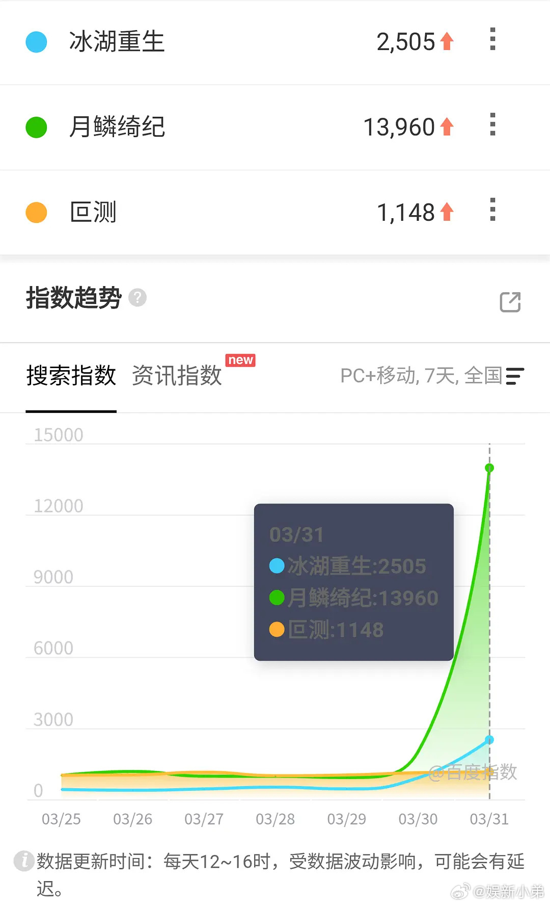 昨日百指白日提灯6.7w冰湖重生定档2505月鳞绮纪定档1.39w