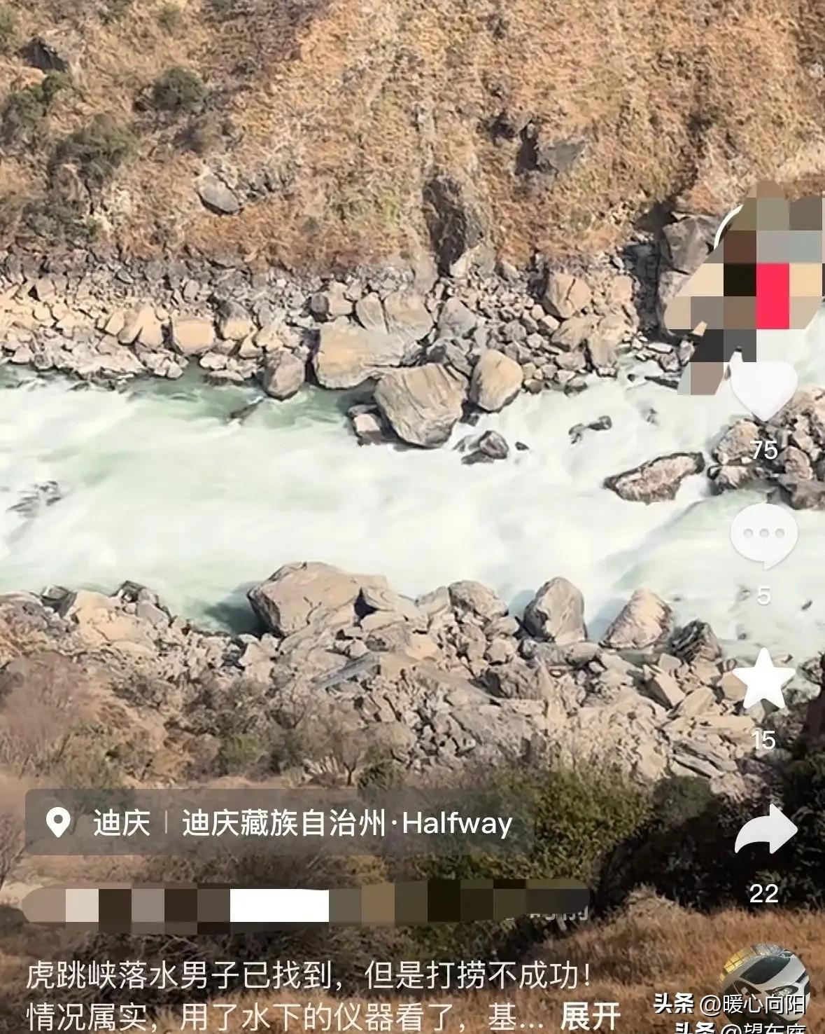 虎跳峡落水男子小杜老师的遗体找到后,距离水面只有40厘米,因为受水下虹力作用,他的遗体被卡在水下巨石缝隙中,打捞难度很大。家属无奈同意放弃打捞! 2月25号下午,小杜老师和未婚妻在云南虎跳峡中虎跳的发疯石附近,排队拍网红照。他手里的不锈钢杯子沾了些土,想在旁边的水里洗一下。因为石头上常年被水打湿满是青苔,就在弯腰洗杯的时侯脚一滑掉进水里了。 救援队经过数天的寻找,在3月6日利用水下摄像头找到了小杜老师的遗体,但是遗体被死死卡在了水下巨石缝隙间,要想成功打捞上来绝非易事。 专业潜水员下去好几次,都没办法打捞。虽然距离水面只有40厘米,但受水下虹力作用,遗体被死死卡在石缝间。如果强行拉拽,遗体会被分解掉,家属无奈只能同意放弃打捞。 小杜老师是山东人,是家里的独生子,原本计划和女友结婚,没想到去云南拍婚纱照却再也回不来了。留下年迈的老母亲孤苦无依在痛苦中度过! 所以大家出去旅游一定要注意安全,要敬畏生命,敬畏大自然,为了家人要平平安安地回来!