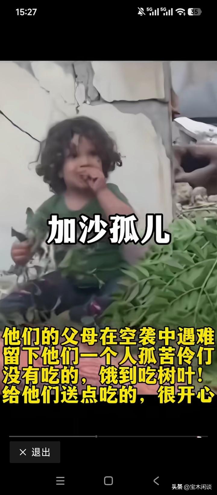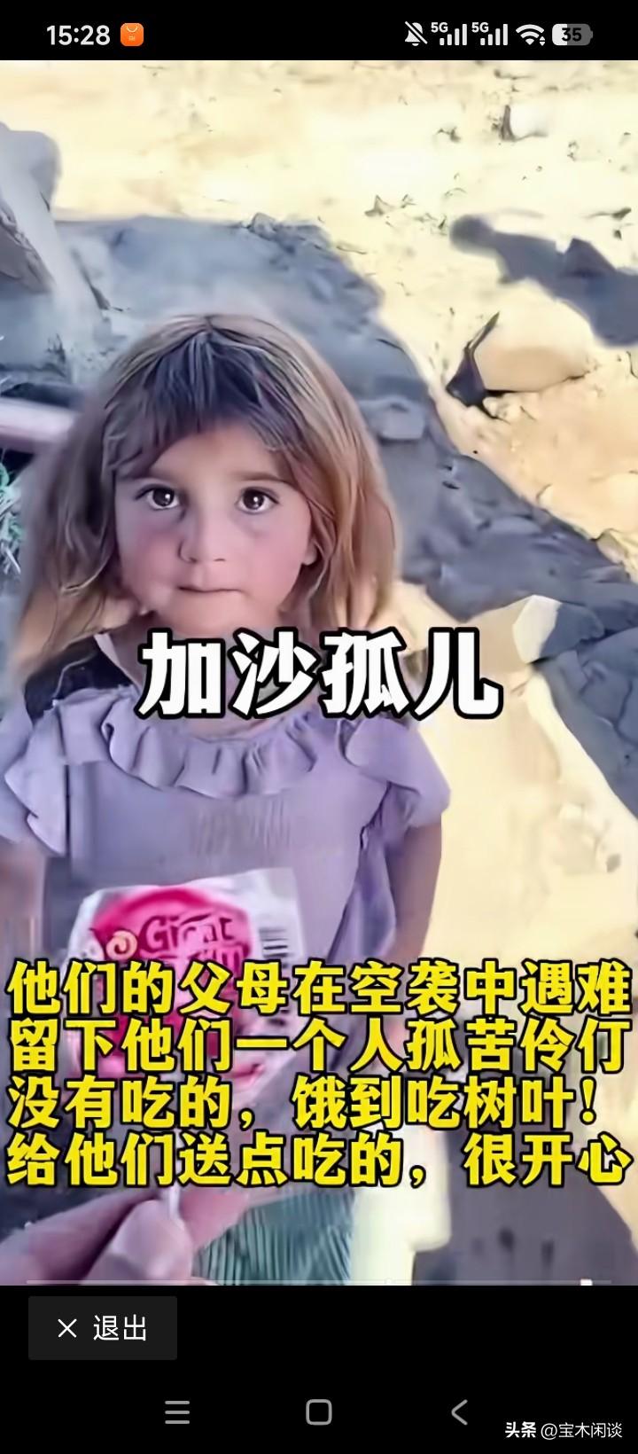 谁造的孽?一对比,实在意难平。加沙已是一片废墟,到处是断壁残垣;特拉维夫却是高楼林立,繁华而气派。再看看加沙的儿童,满脸的惊恐不安,眼里全是恐惧和慌乱,他们不知道究竟发生了什么,父母为什么会死,也不知道为什么会挨饿,会受伤。除了少数幸运的小孩,偶然会获得一些好心人的救济以外,大多数孤儿只得吃草根,吃树叶,这还是那个人间吗?不管是什么人,当人性中的恶没有被压制住,那就等同于魔鬼,与弱肉强食的动物世界无异。