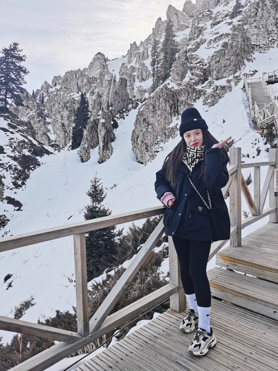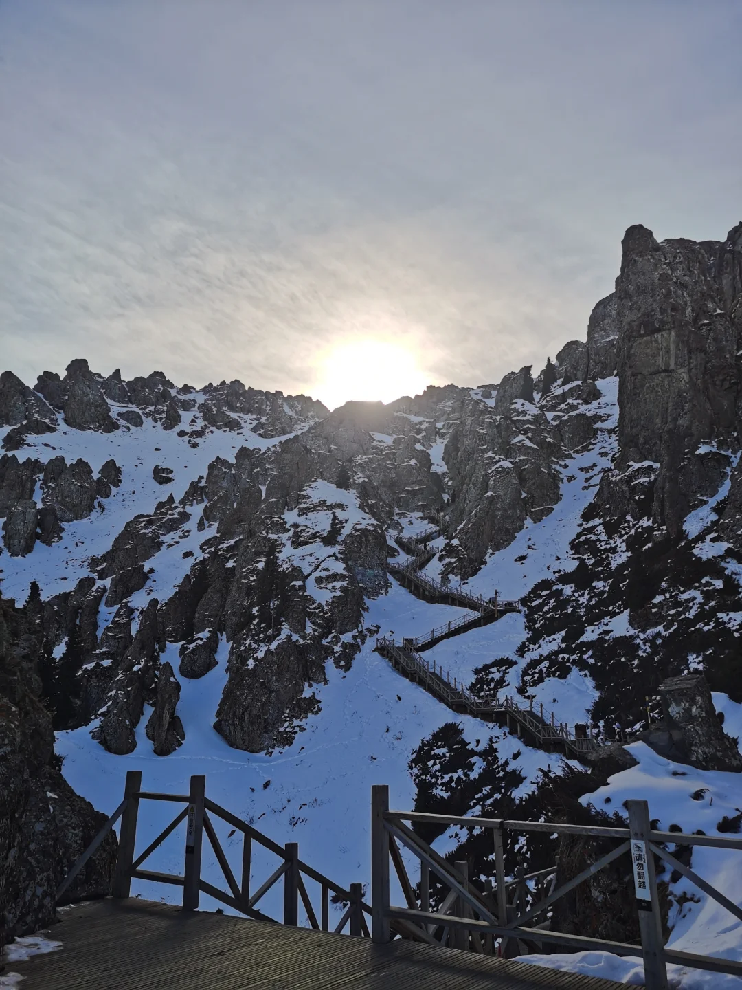 根据身体情况和下雪栈道情况选择上山,这条路线看雪景很美丽,观光车+索道往返(220元/人)