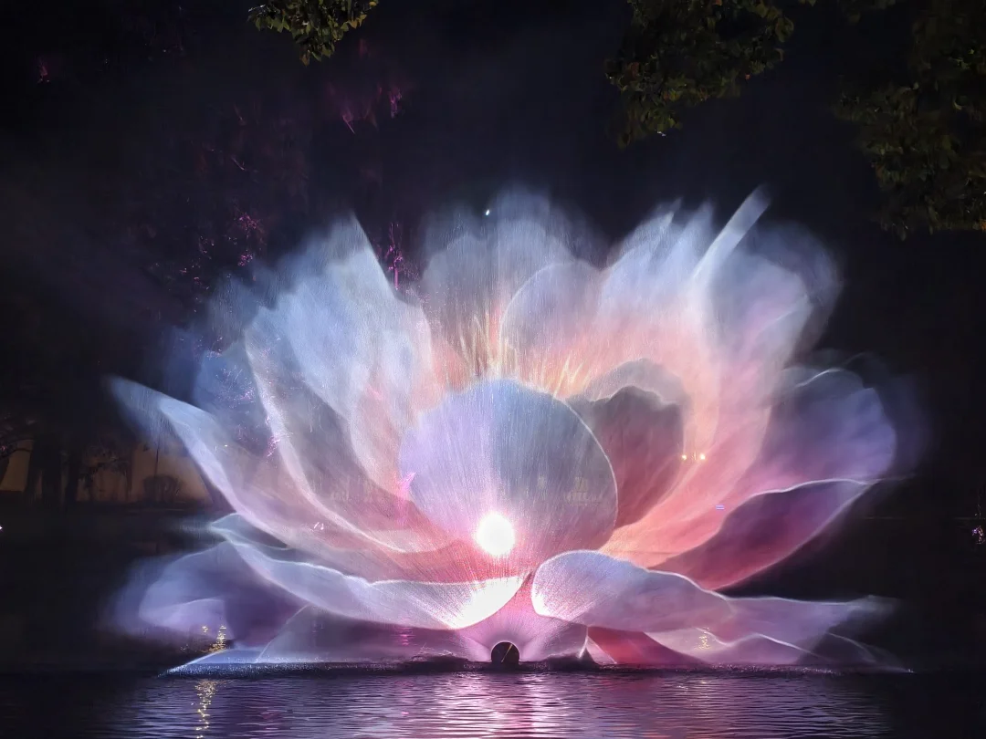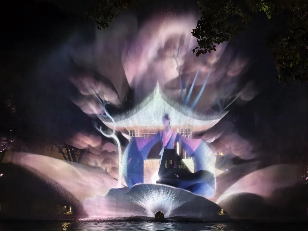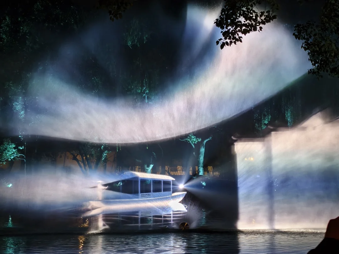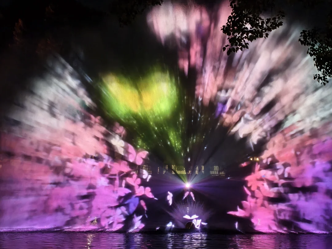 看到字幕从右手边走→一步一步引入光影路线→开始自己的寻梦之旅→蕞后来到水幕视觉体验