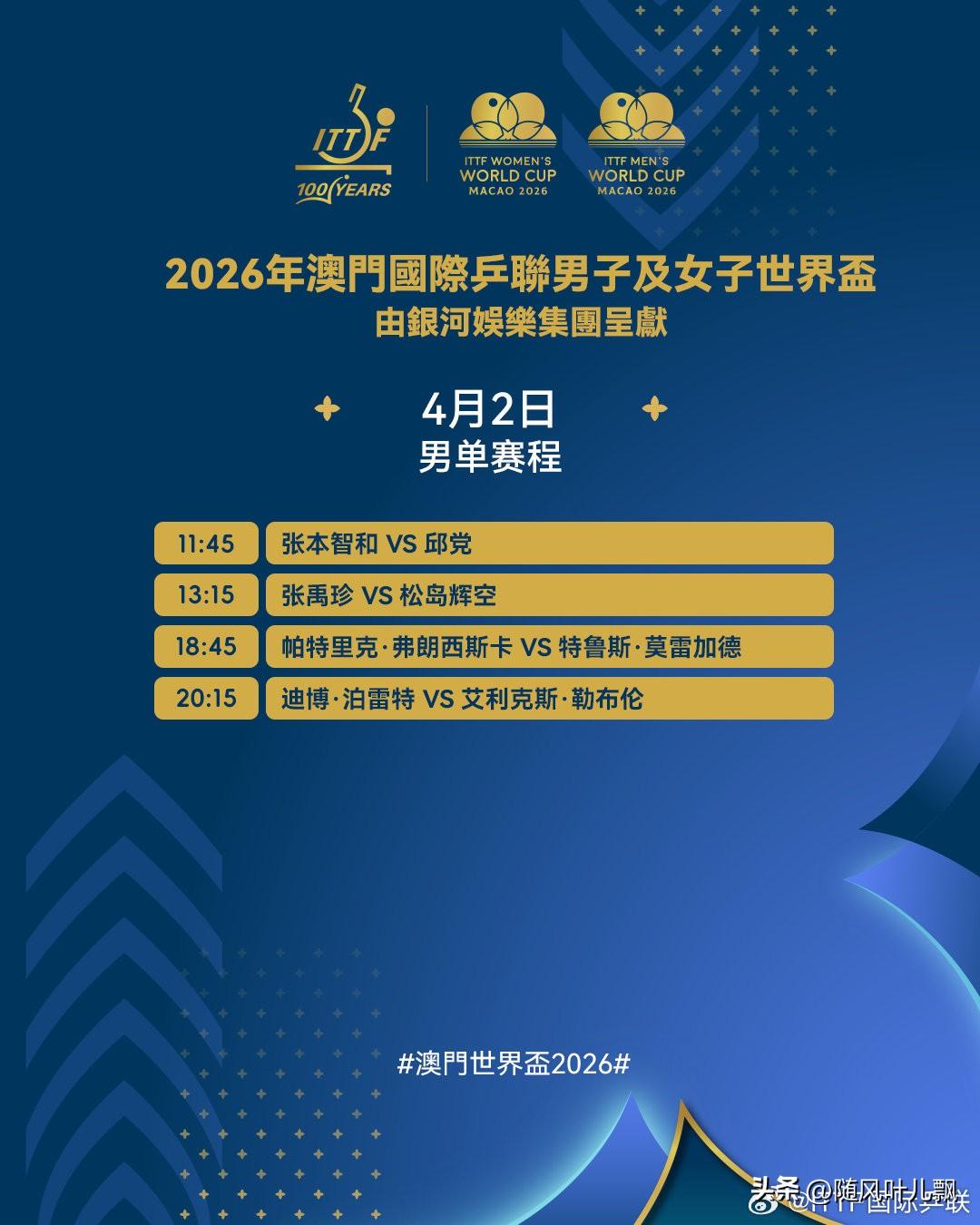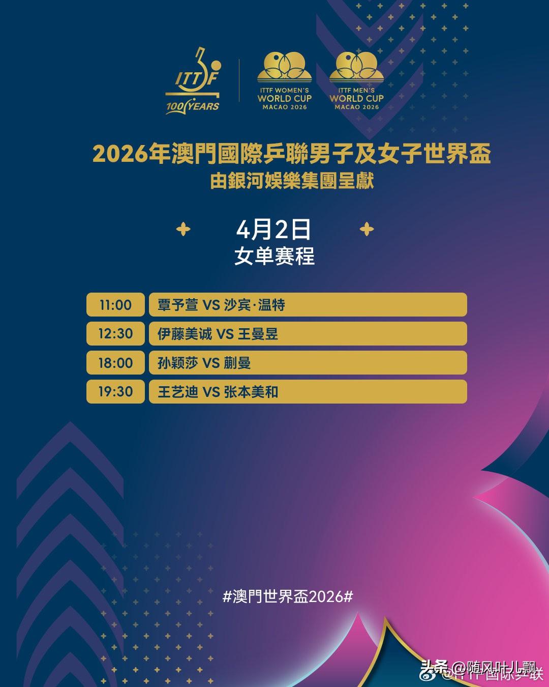 4月2日澳门世界杯2场内战。 中国:蒯曼vs孙颖莎, 北京时间18:00 两人历史交手8次,蒯曼6负2胜,其中2胜中含一次孙颖莎伤退,所以实际上蒯曼只能说胜孙颖莎1次。两人最近一次交手是重庆冠军赛,当时蒯曼是4:2获胜。 澳门世界杯蒯曼状态不佳,慢热,小组赛与卢茨的比赛中,差点被让二追三。预测孙颖莎4:2蒯曼。 法国:泊雷特vs艾利克斯勒布伦vs。 北京时间:20:15 这是两人国际赛场的遭遇战。 泊雷特22岁,世排第28位; 艾利克斯勒布伦23岁,世排第14位。 预测艾利克斯勒布伦4:2战胜泊雷特。 赛场风云,瞬息万变,一切皆有可能,一切也是最好的安排,愿所有运动员都健康完赛,赛岀水平和风格。