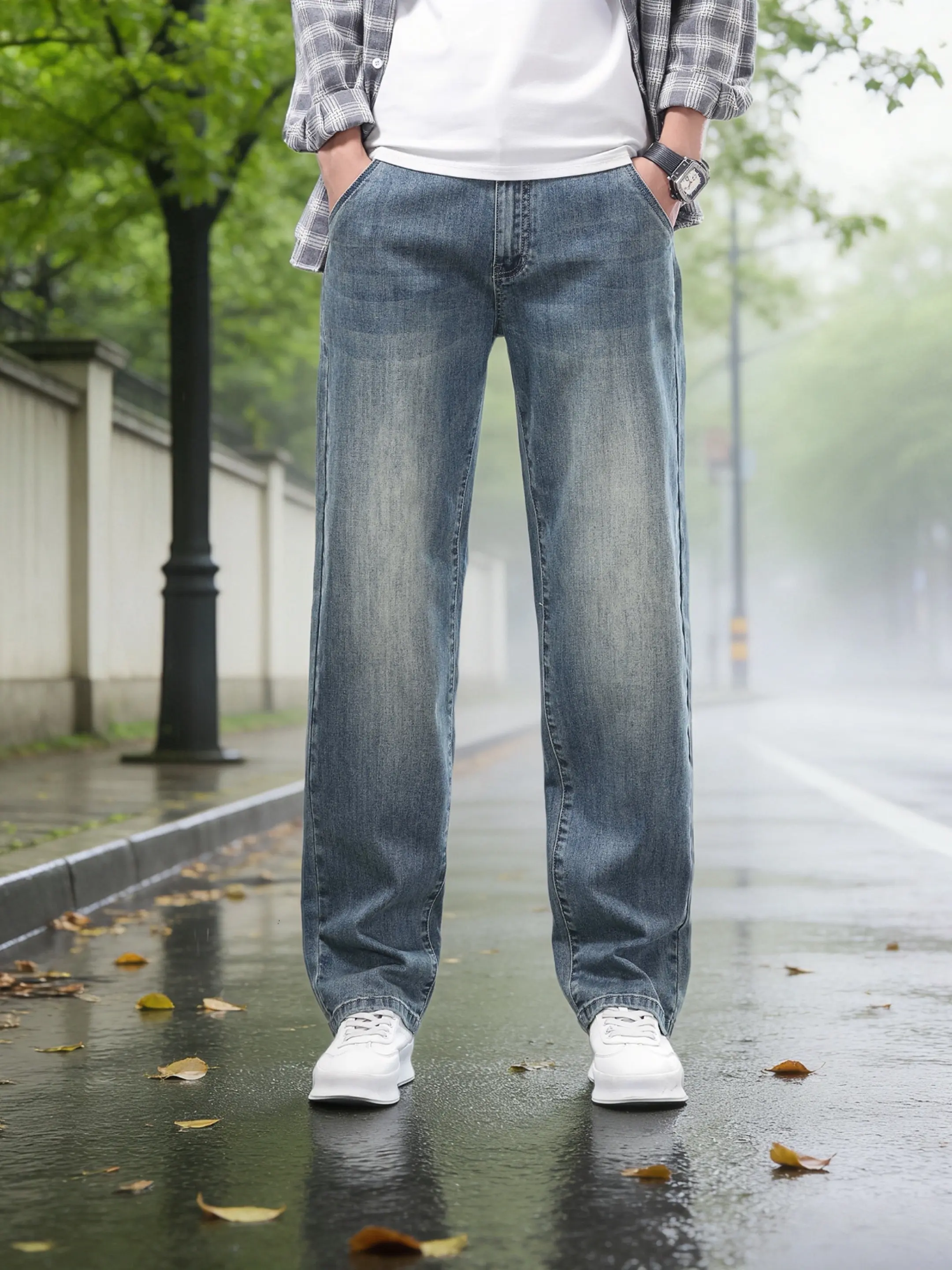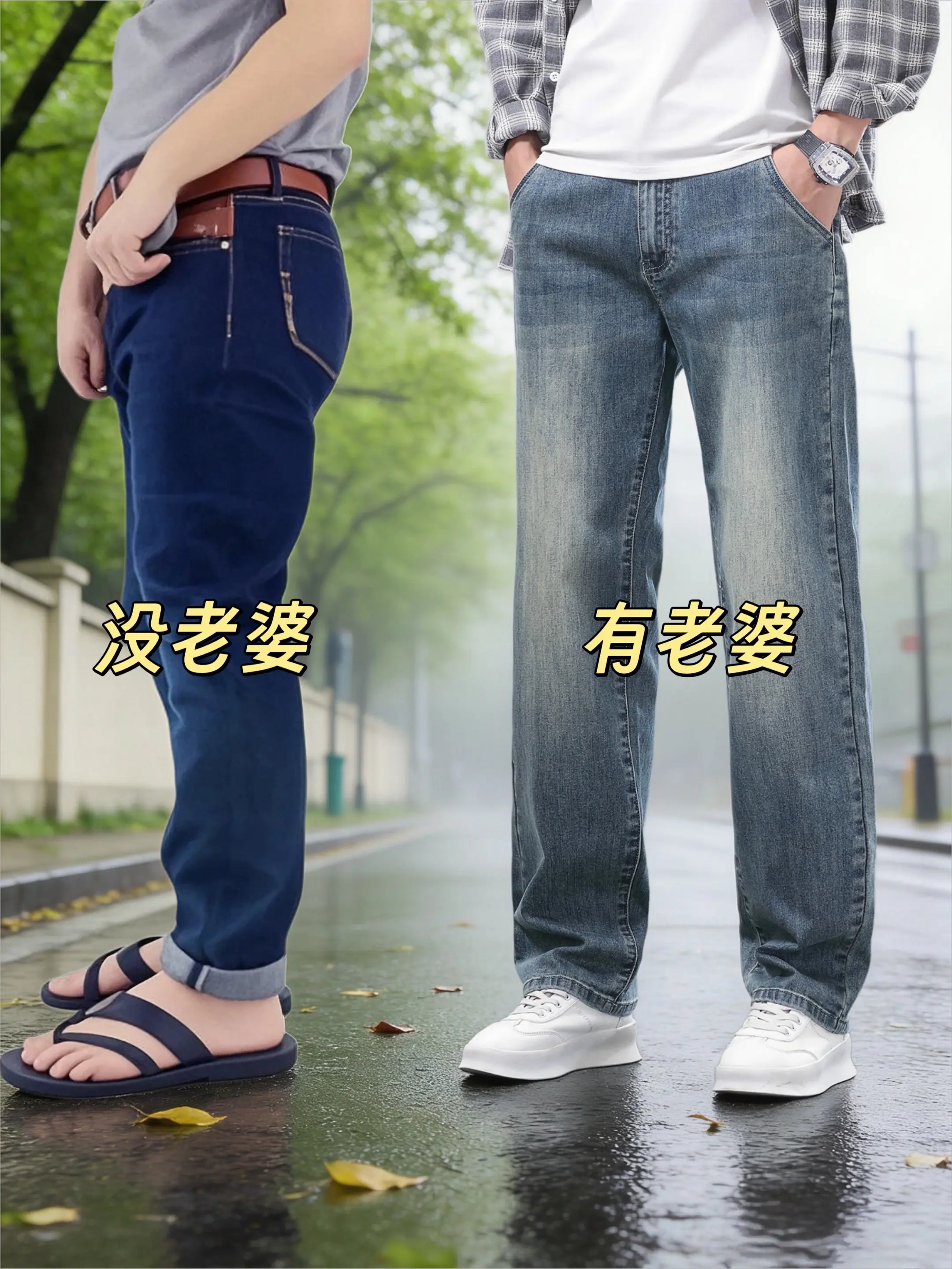 牛仔裤搭配男生的裤子应该怎么选 牛仔裤穿搭 牛仔裤男直筒裤 牛仔裤男宽松直筒