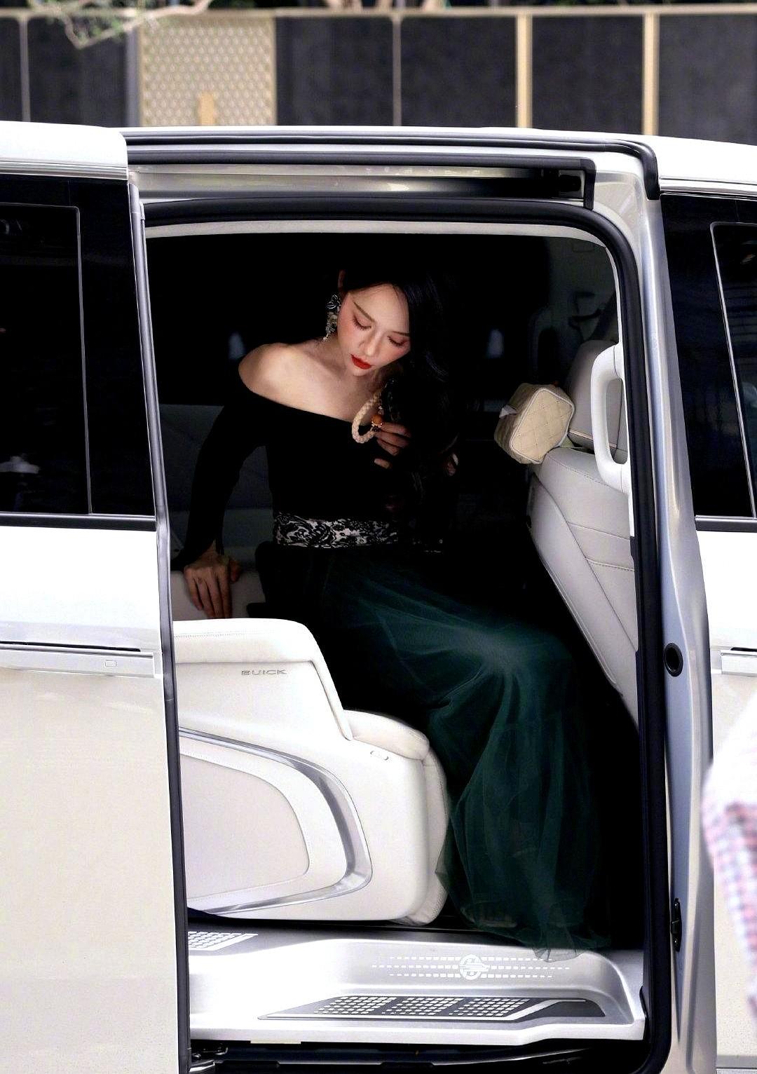 换上一身黑色露肩上衣配墨绿纱裙,拿着复古相机,气质优雅又灵动。这哪儿看得出快五十了?身材管理太到位了。