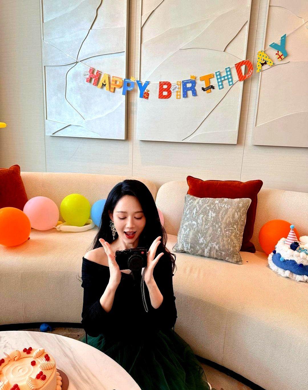 提前庆生,照片里她头戴金冠,被鲜花气球簇拥,皮肤紧致,笑容灿烂得像个二十多岁的小姑娘。