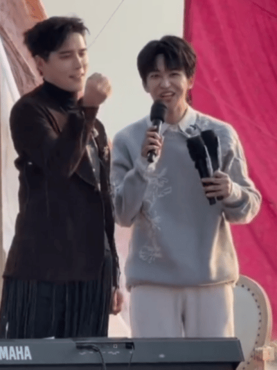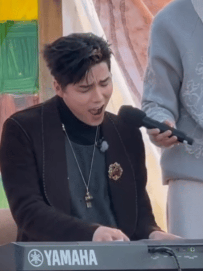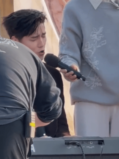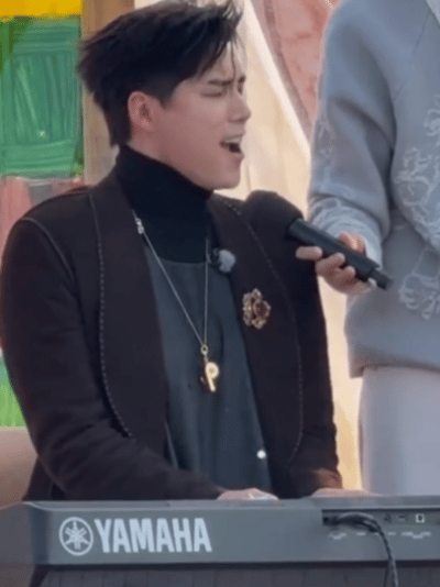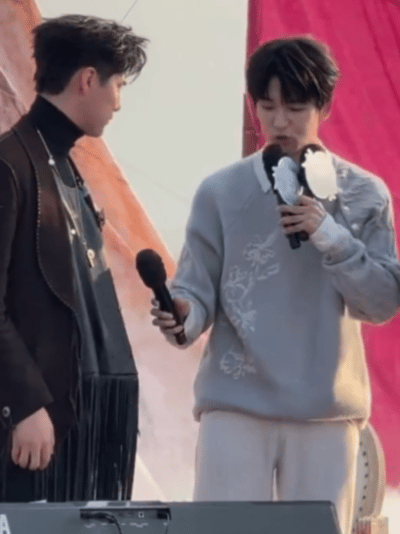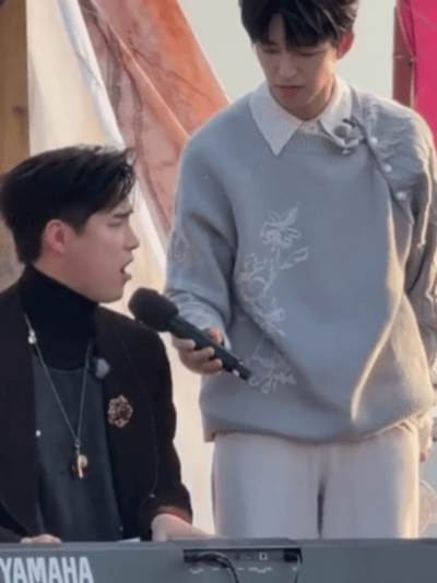 黄子弘凡新综艺路透黄子弘凡给阿云嘎当话筒架 黄子弘凡模仿阿云嘎的样子有点皮了昂,