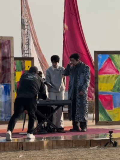 黄子弘凡新综艺路透黄子弘凡给阿云嘎当话筒架 黄子弘凡模仿阿云嘎的样子有点皮了昂,这俩人太搞笑了!哈哈哈哈