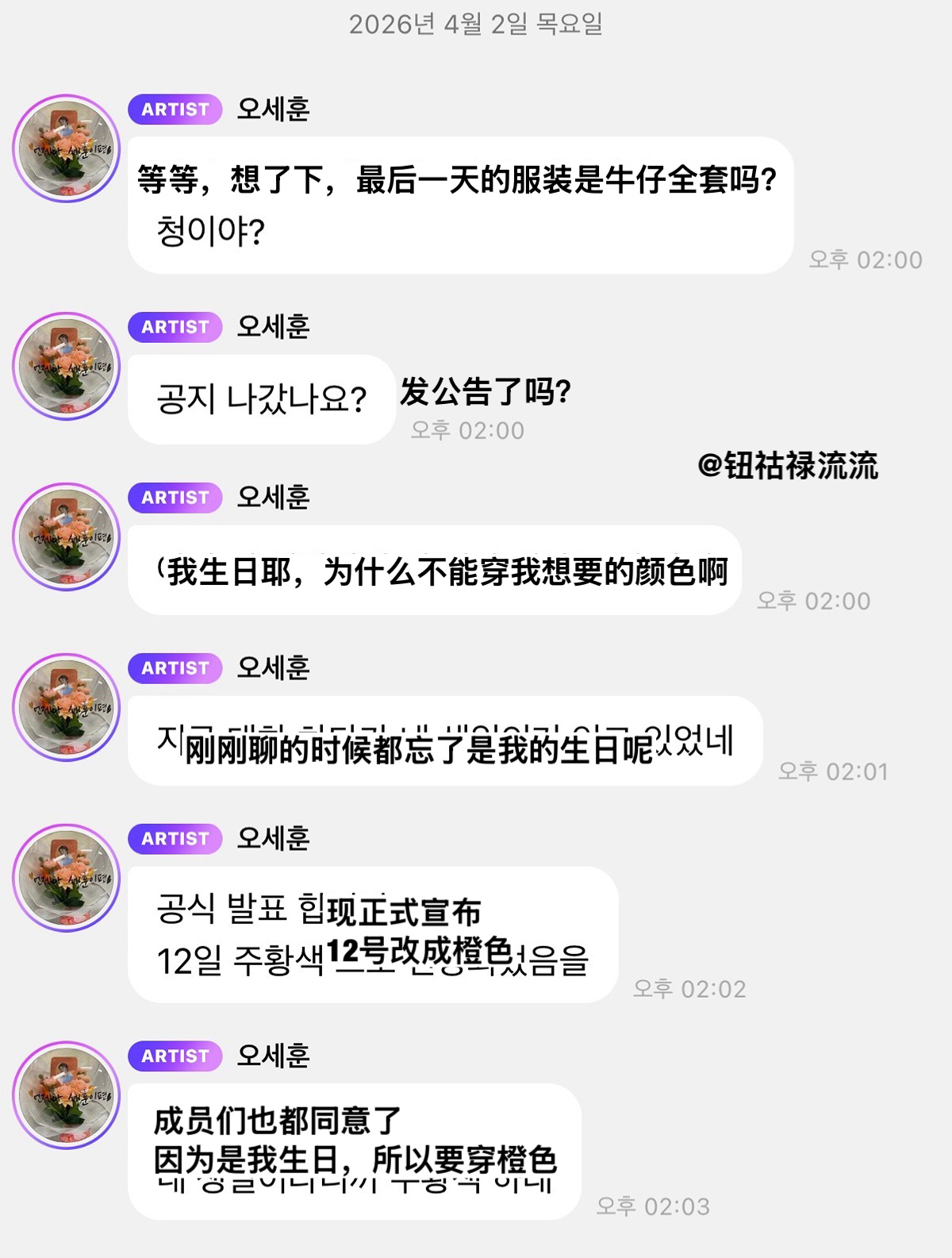 【热帖】亲自公布演唱会dress code的吴世勋成员忘记演唱会最后一天是世勋生日了,当天dress code是牛仔,所以经过其他成员同意,世勋现正式宣布:12号的dress code是橙色🧡
