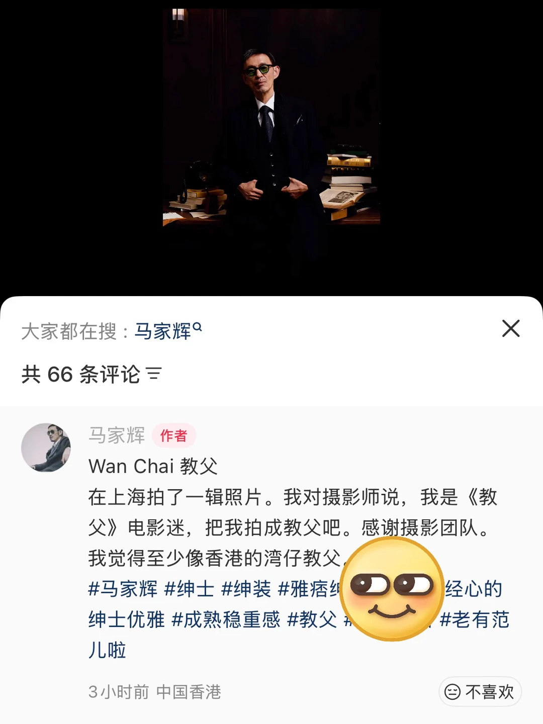看到马家辉拍了一组《教父》风大片,还自称“香港湾仔教父”,真的太有趣了😆