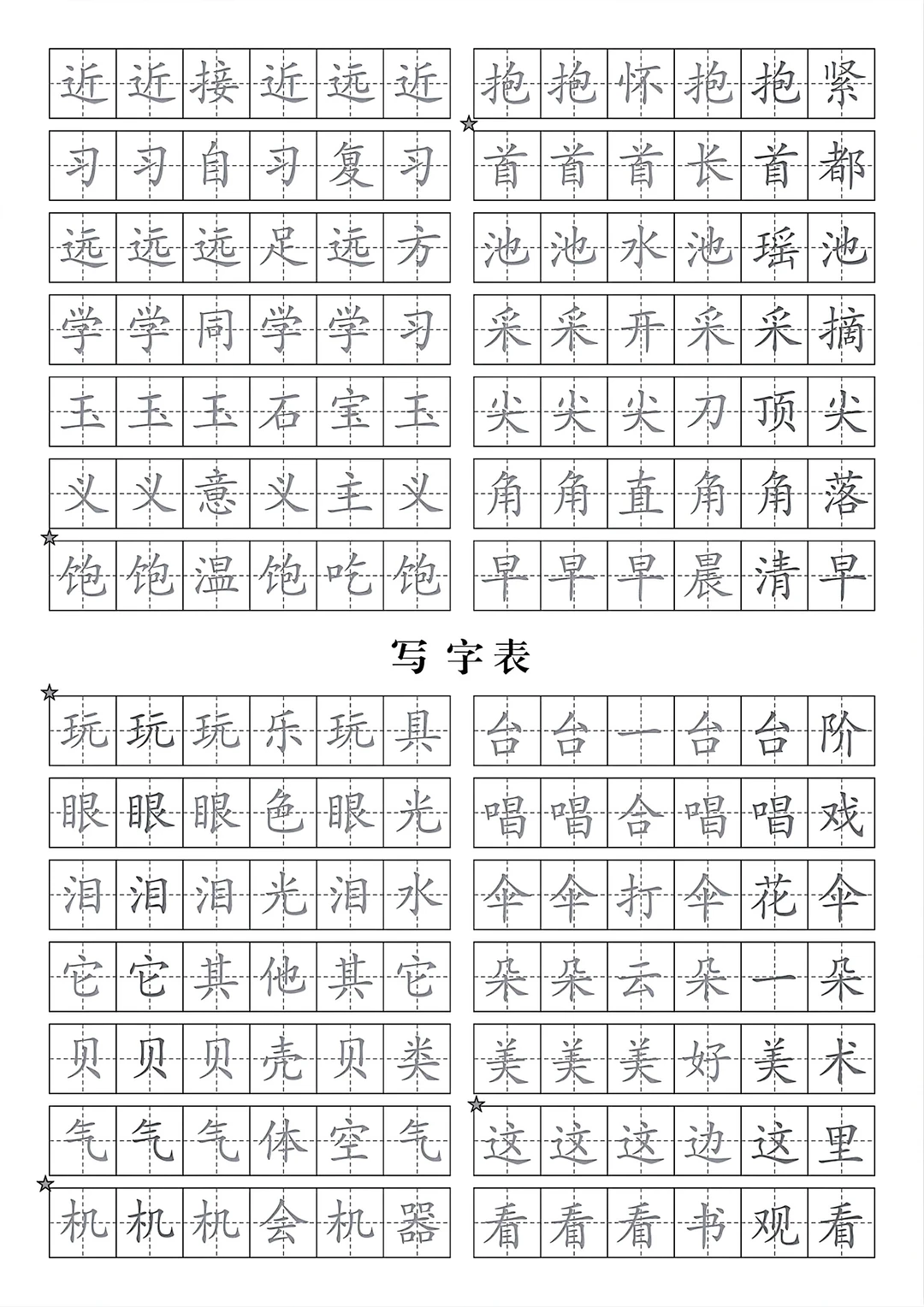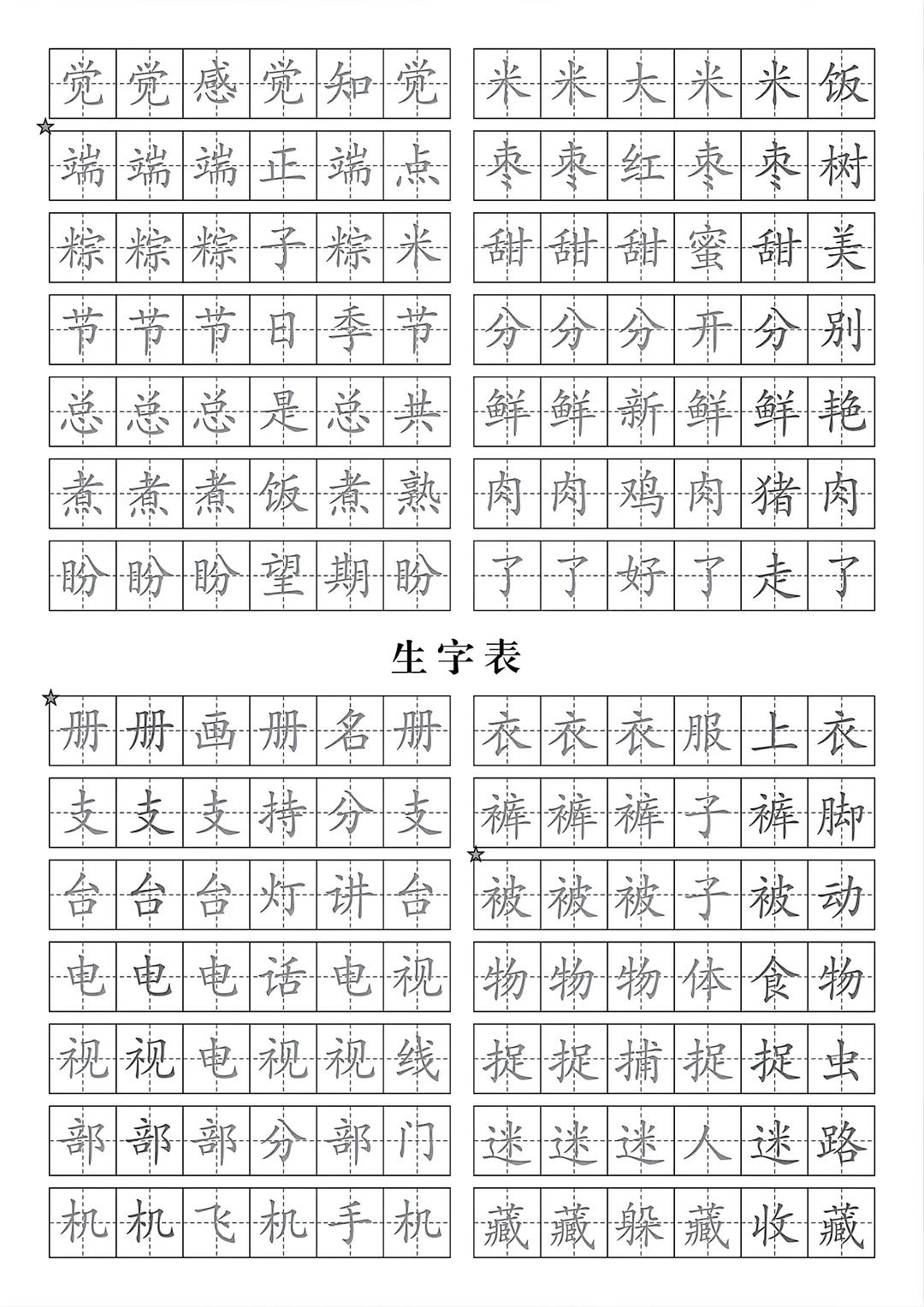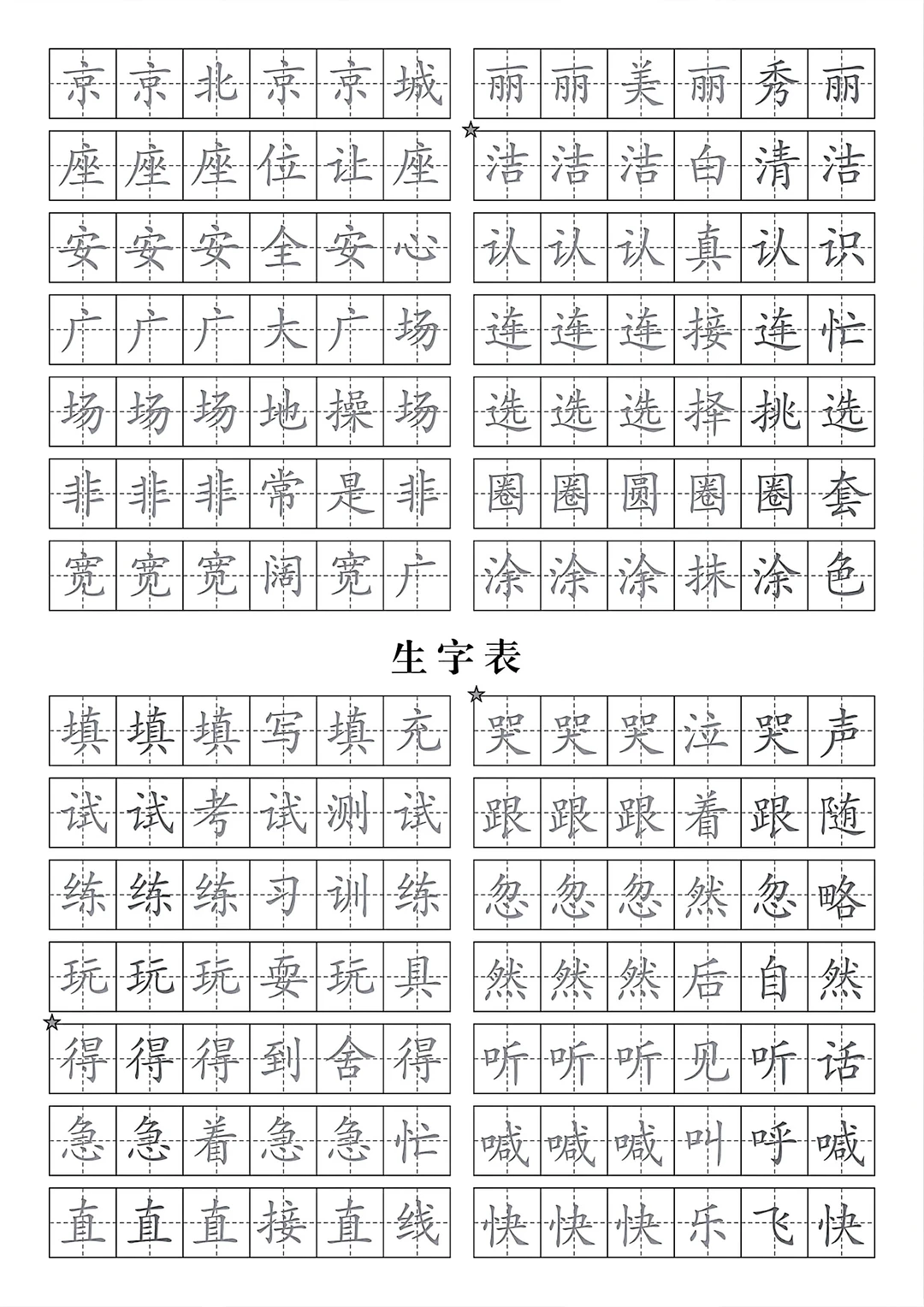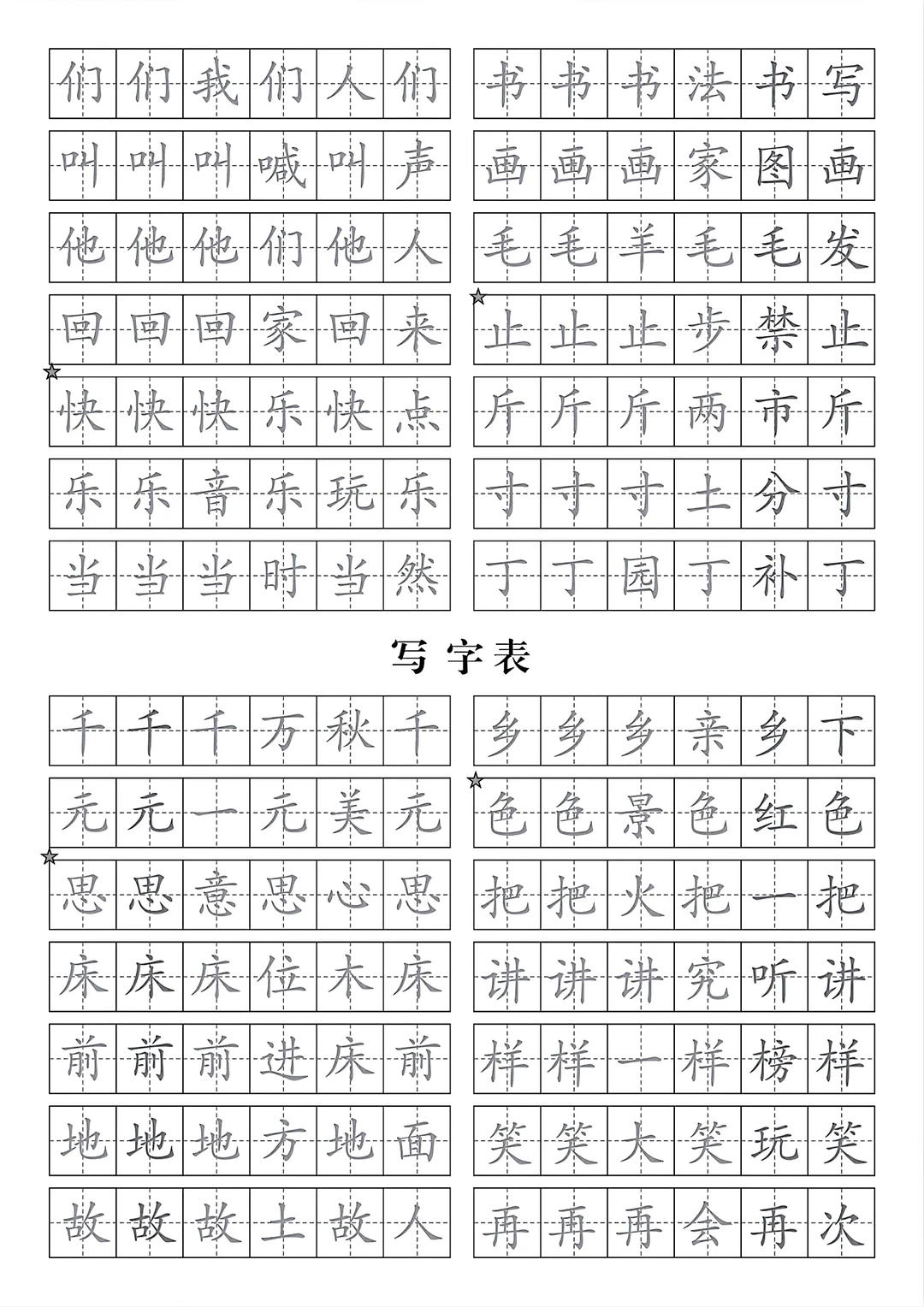 共23页,自制的一份字帖,主要是为了让孩子练一下字,练字的过程顺便把生字表,写字表多记记,然后还有组词也是作业里面需要的