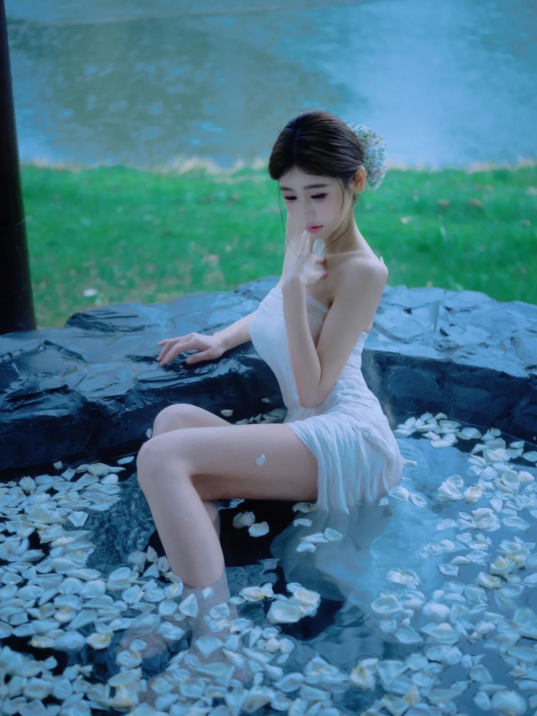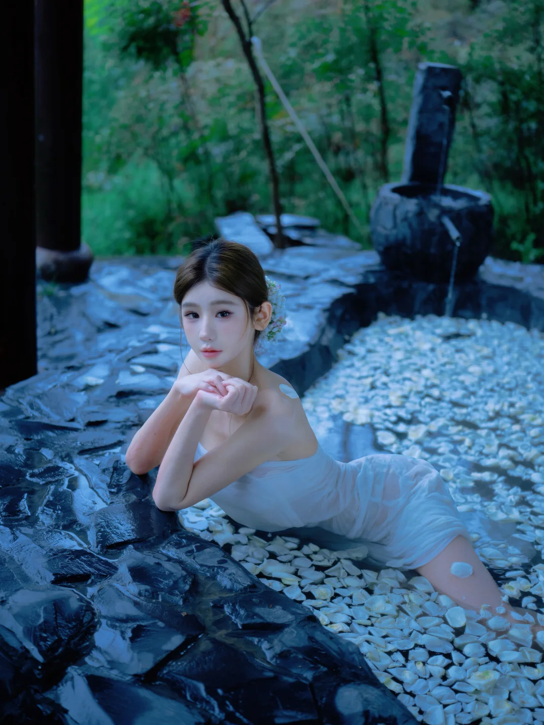 一池芬芳的白玫瑰温泉浴♨️
