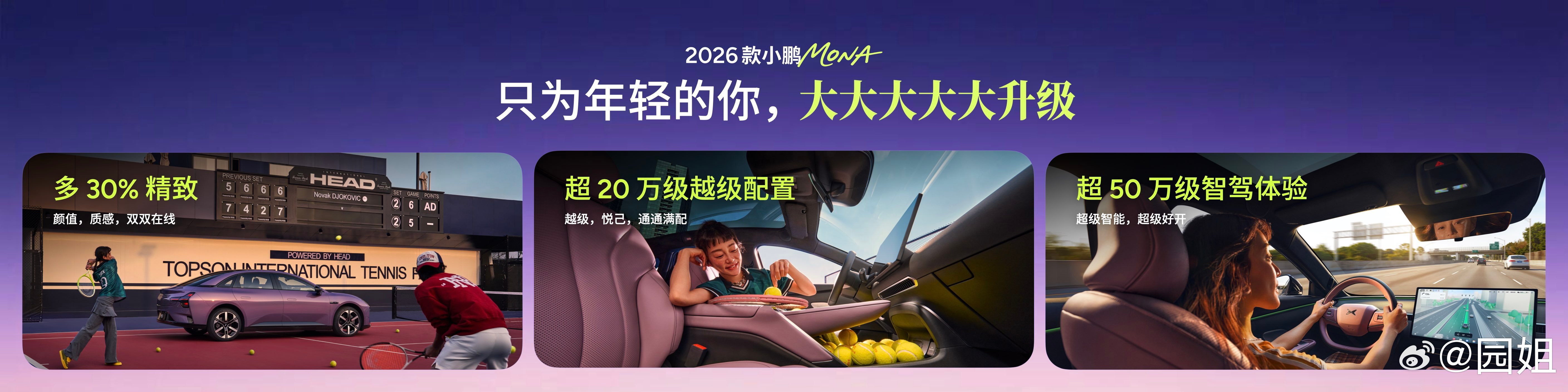 2026款小鹏MONA M03新增罗兰紫、牛油果绿两大春日配色,搭配星云白、暗夜黑等共六款外观配色,车漆升级成了劳斯莱斯同款的巴斯夫2K清漆,19英寸专属轮毂、专属内饰缝线以及纳帕真皮座椅,越级质感更显诚意。#2026款小鹏MONA今日上市##2026款小鹏MONA大大大大大升级#