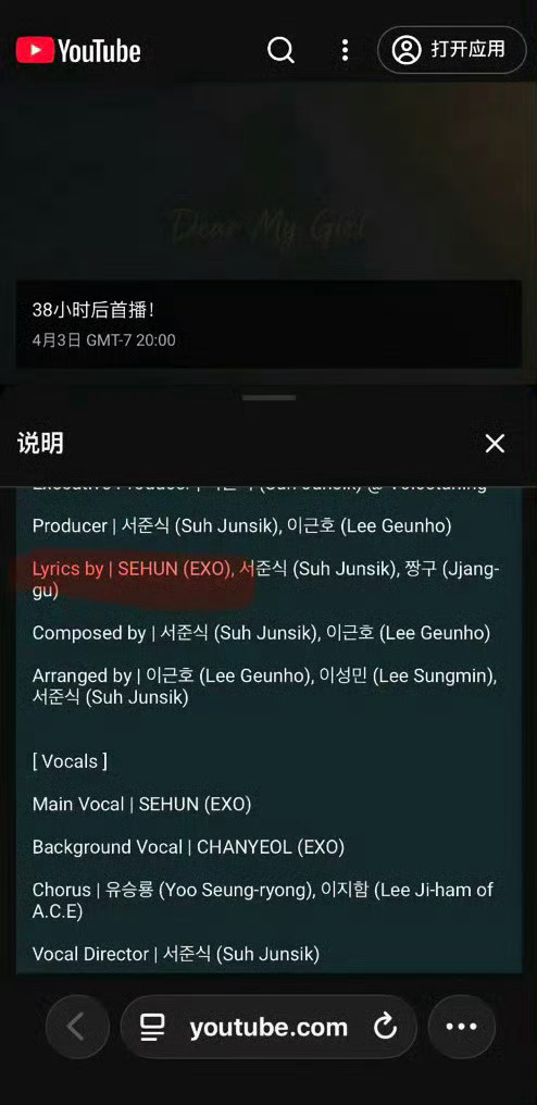 【twi】吴世勋新歌《Dear My Girl》将4月4日11点发布,由世勋本人参与歌词和mv创作,灿烈参与和声
