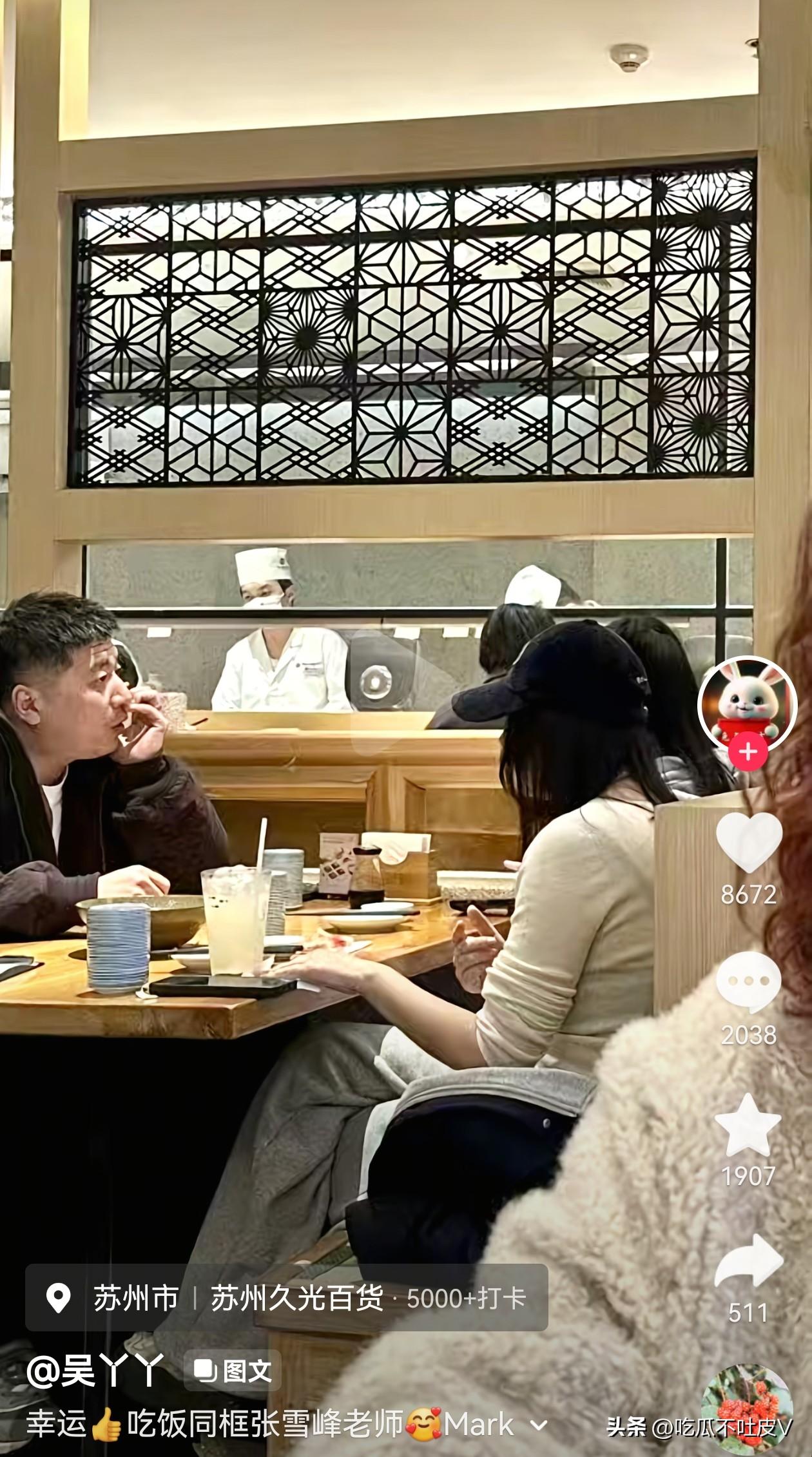 谢谢阿姨记录了她和爸爸妈妈一起吃饭的画面,她收藏了,是她最爱吃的寿司。我们不难猜测,小姑娘这几天应该都在刷各种视频,希望找到她爸爸留下的每一个身影,然后好好地保存起来,然后每当想爸爸的时候,就拿出来看看。