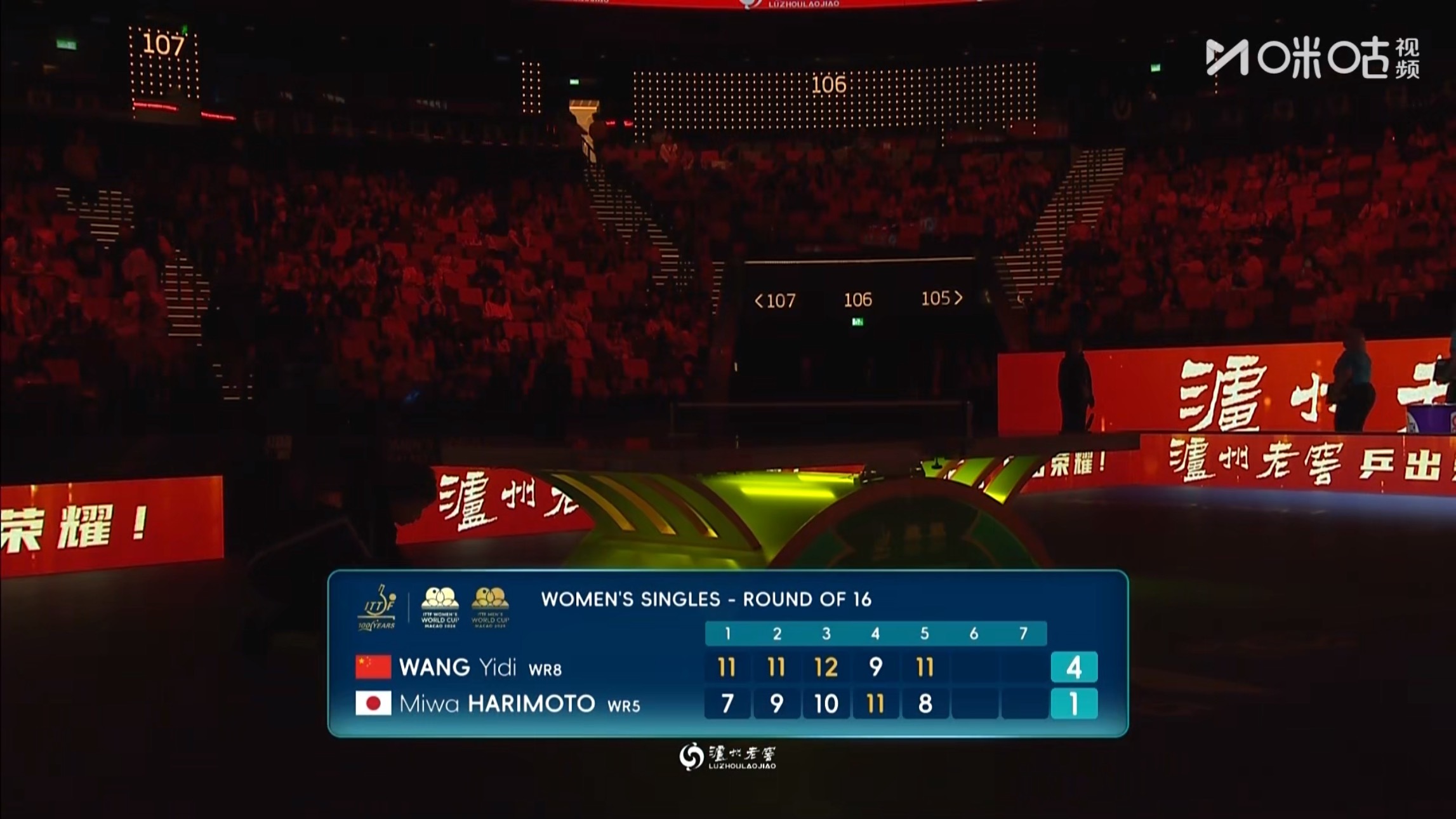 王艺迪4比1张本美和 乒乓球 (11-7,11-9,12-10,9-11,11-8)晋级澳门世界杯2026 女单8强