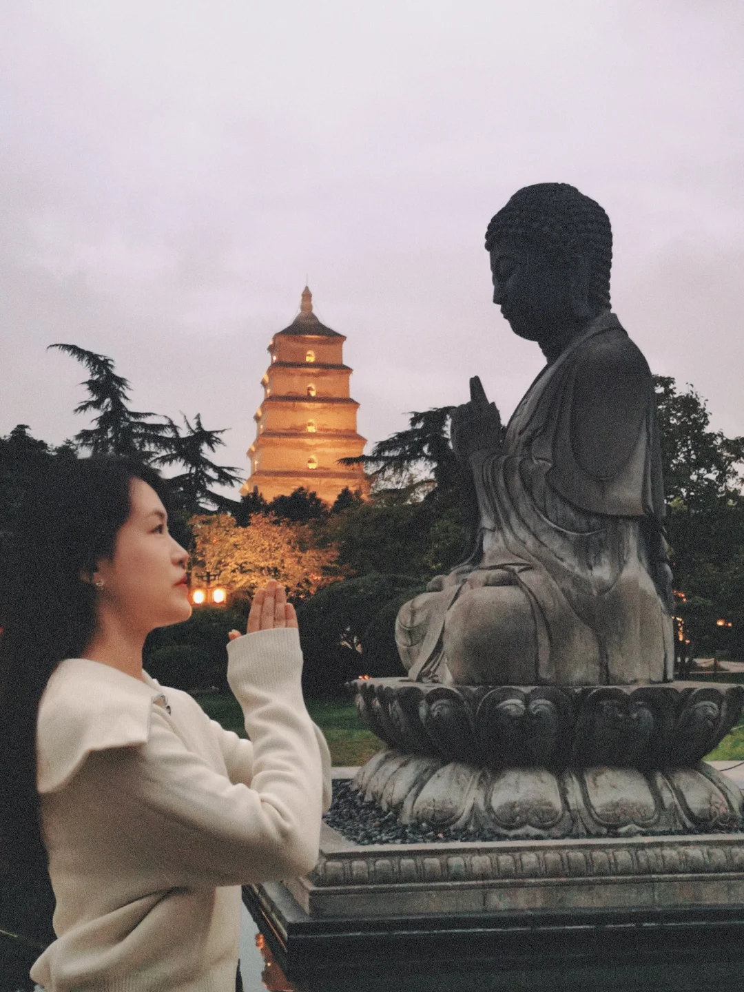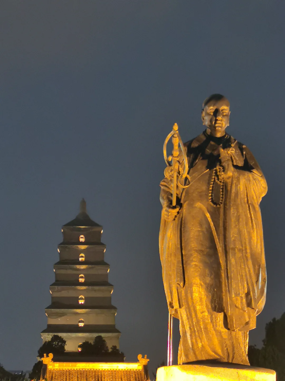 3.大雁塔:可去大悦城四楼拍照比较近图3️⃣,大雁塔南广场拍玄奘与大雁塔同框照图4️⃣,唐大慈恩寺遗址公园拍如来佛与大雁塔同框照图5️⃣。